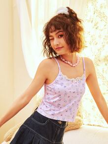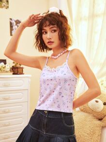 Cartoon Print Contrast Lace Cami