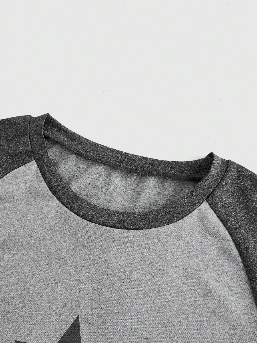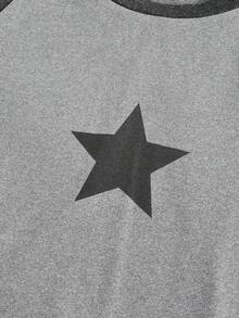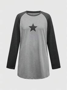 Casual Floral Gray Five-Pointed Star Printed Long Sleeve Nightdress Home Dress