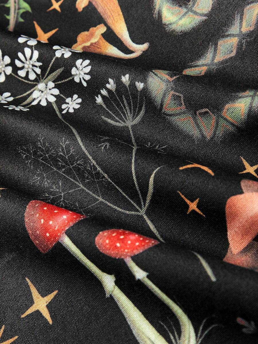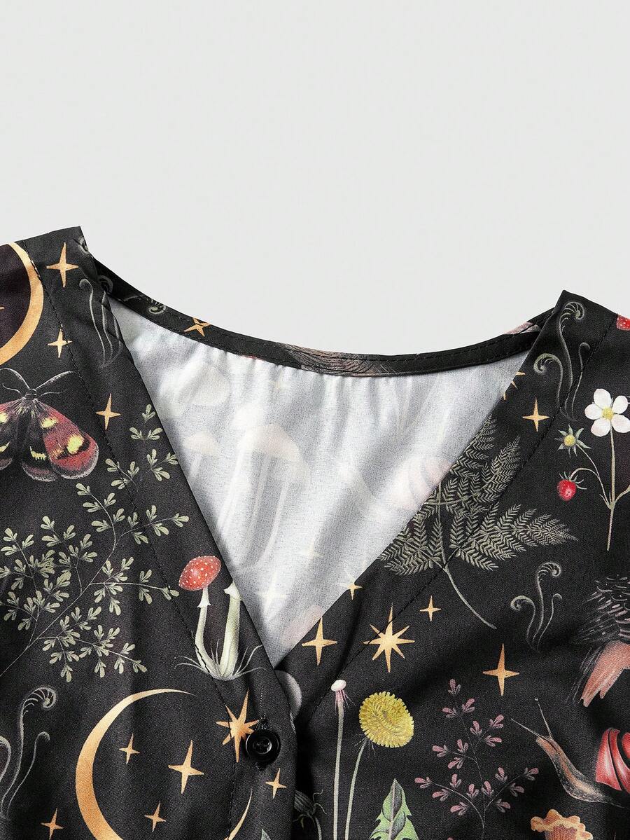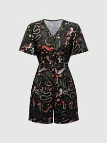 Casual Gothic Forest Flora & Fauna Allover Print Women's V-Neck Jumpsuit With Elastic Waist