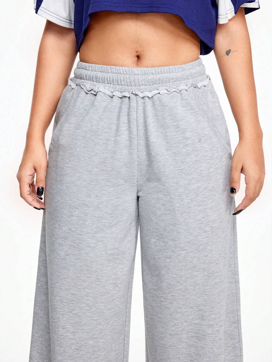 Casual Loose Fit Wide Leg Cuffed Women Long Pants