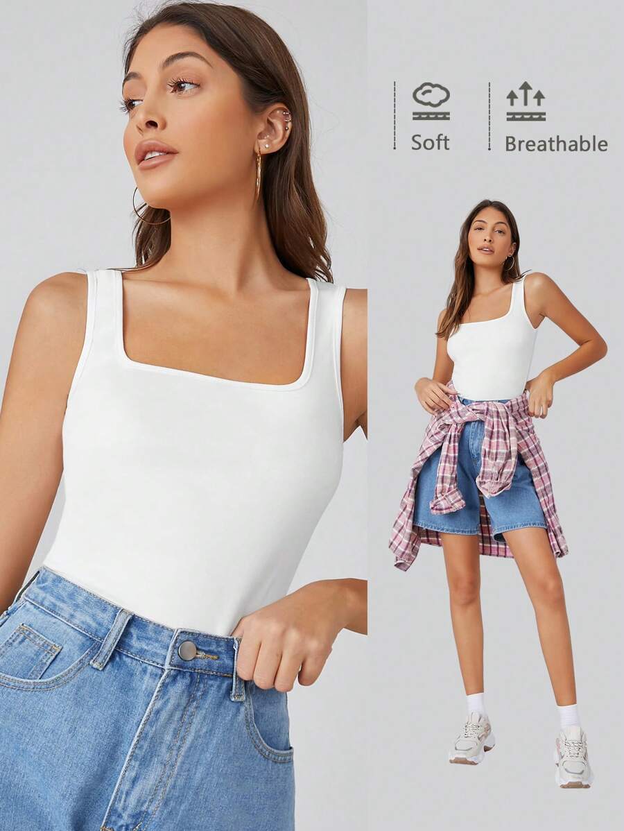 Casual Versatile Square Neck Solid Tank Top