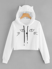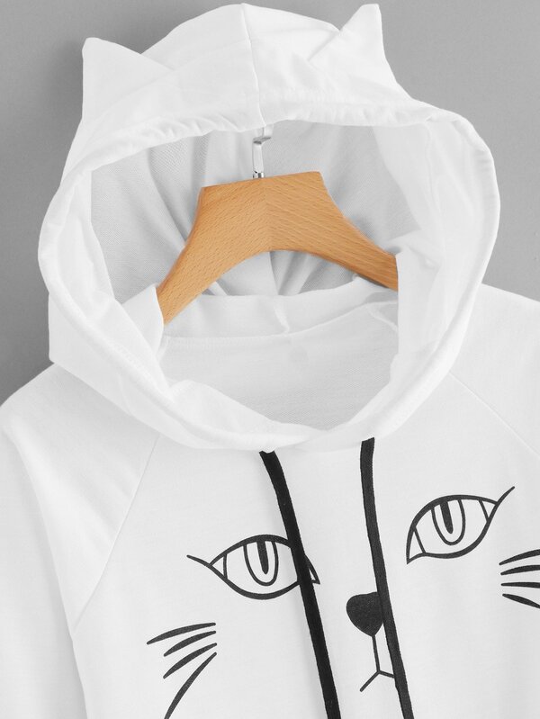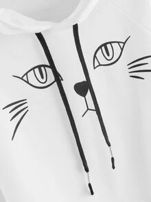 Cat Print Hooded Sweatshirt