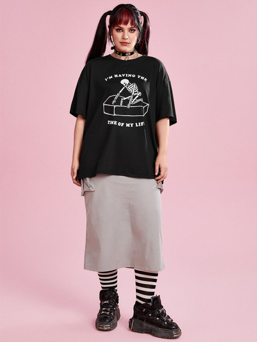 Catsneeze Plus Skeleton & Slogan Graphic Drop Shoulder Tee