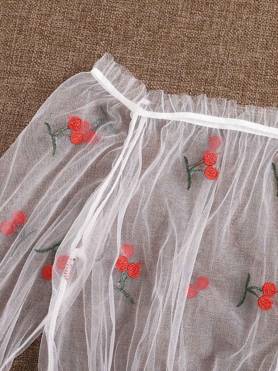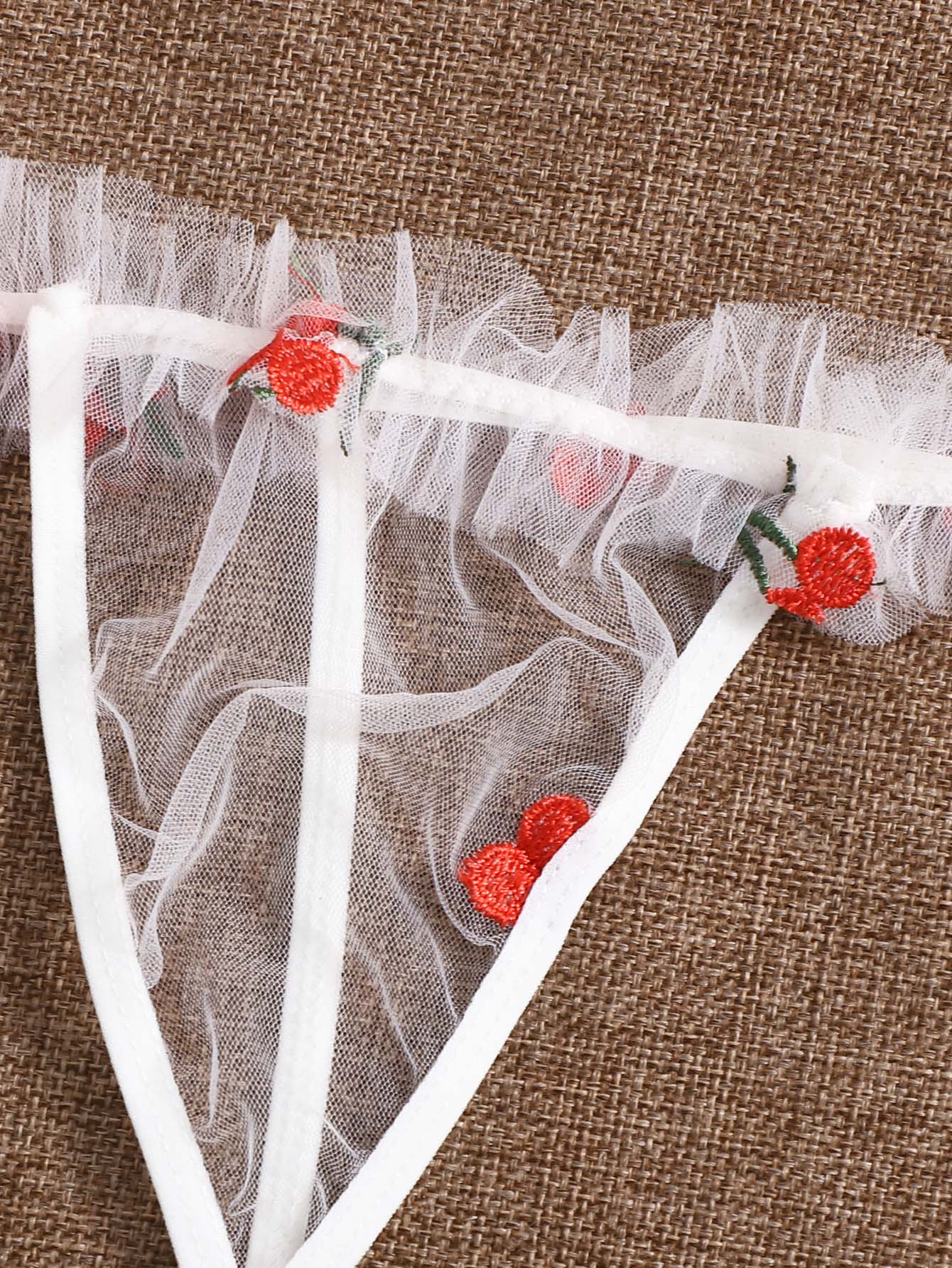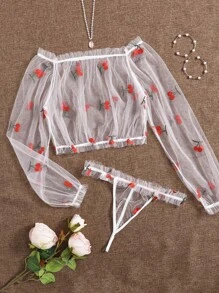 Cherry Embroidered Mesh Bardot Lingerie Set