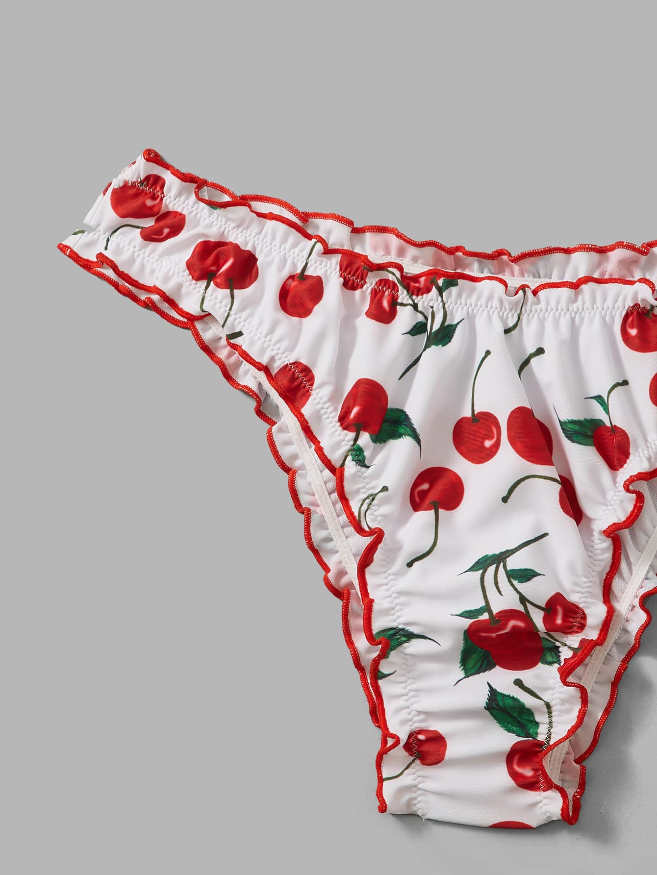 Cherry Print Frill Contrast Binding Bikini Bottom
