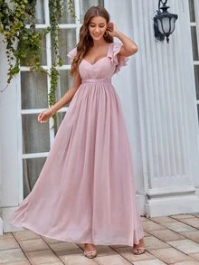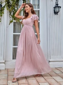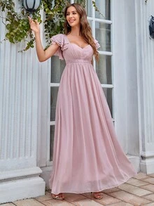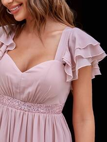 Chiffon Sweetheart Layered Sleeve Contrast Sequins Maxi Prom Dress