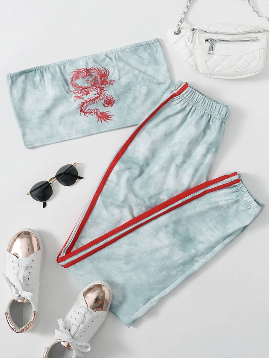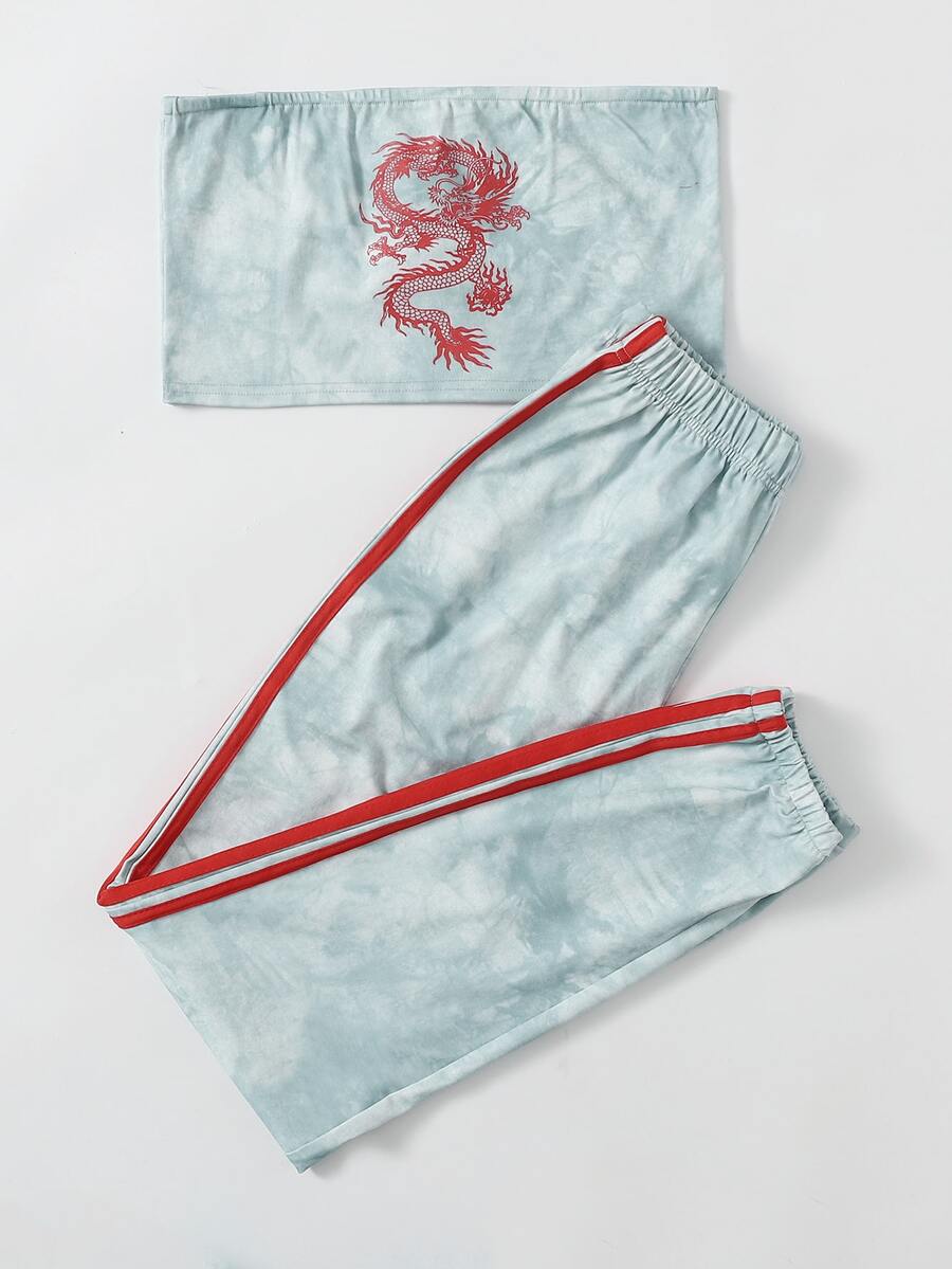 Chinese Dragon Tie Dye Tube Top & Sweatpants