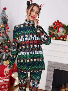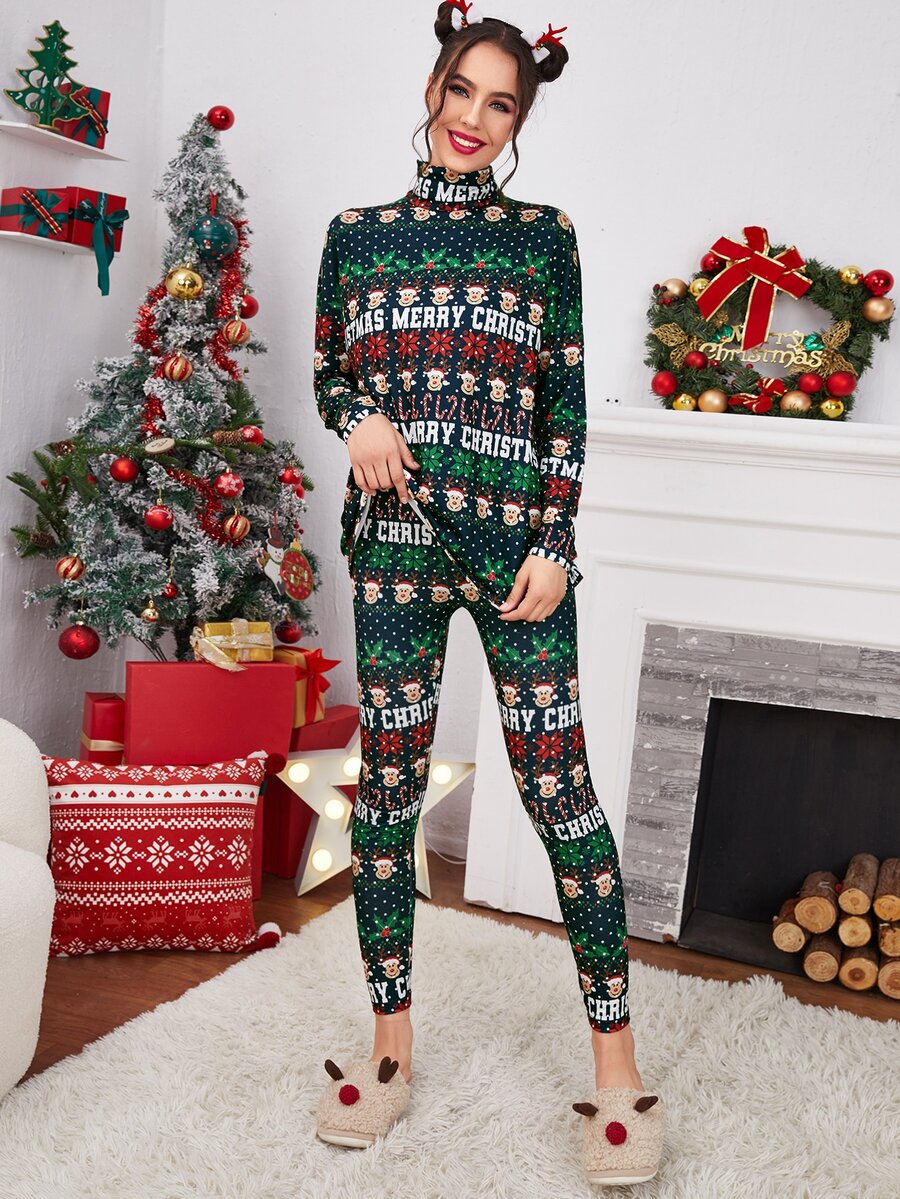 Christmas Print Turtleneck Top & Pants