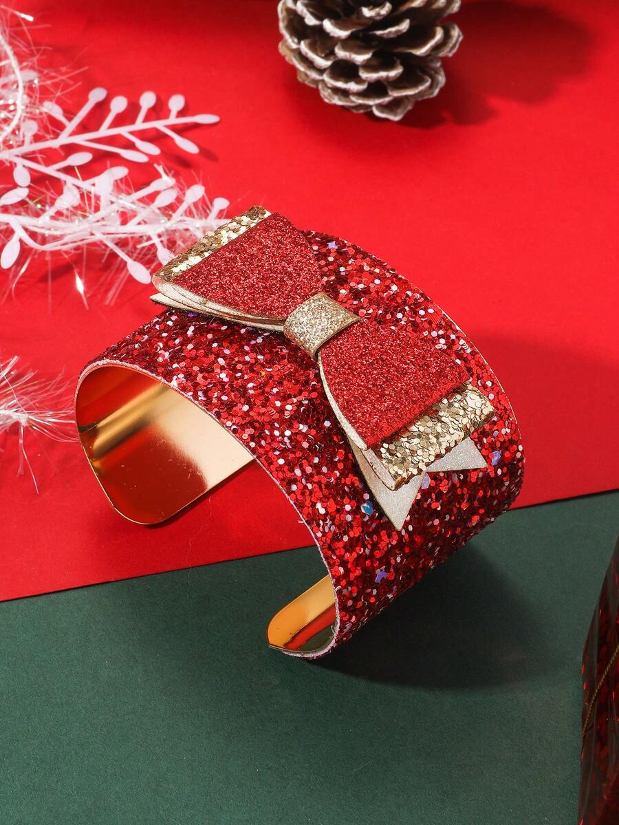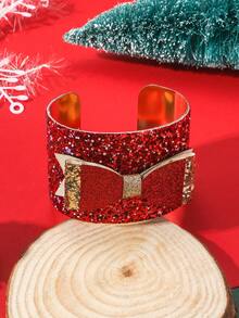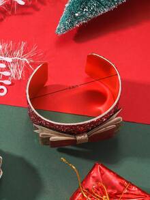 Christmas Rhinestone Bow Decor Cuff Bangle