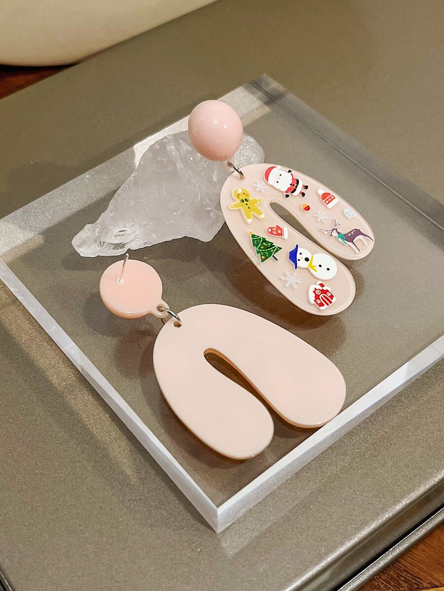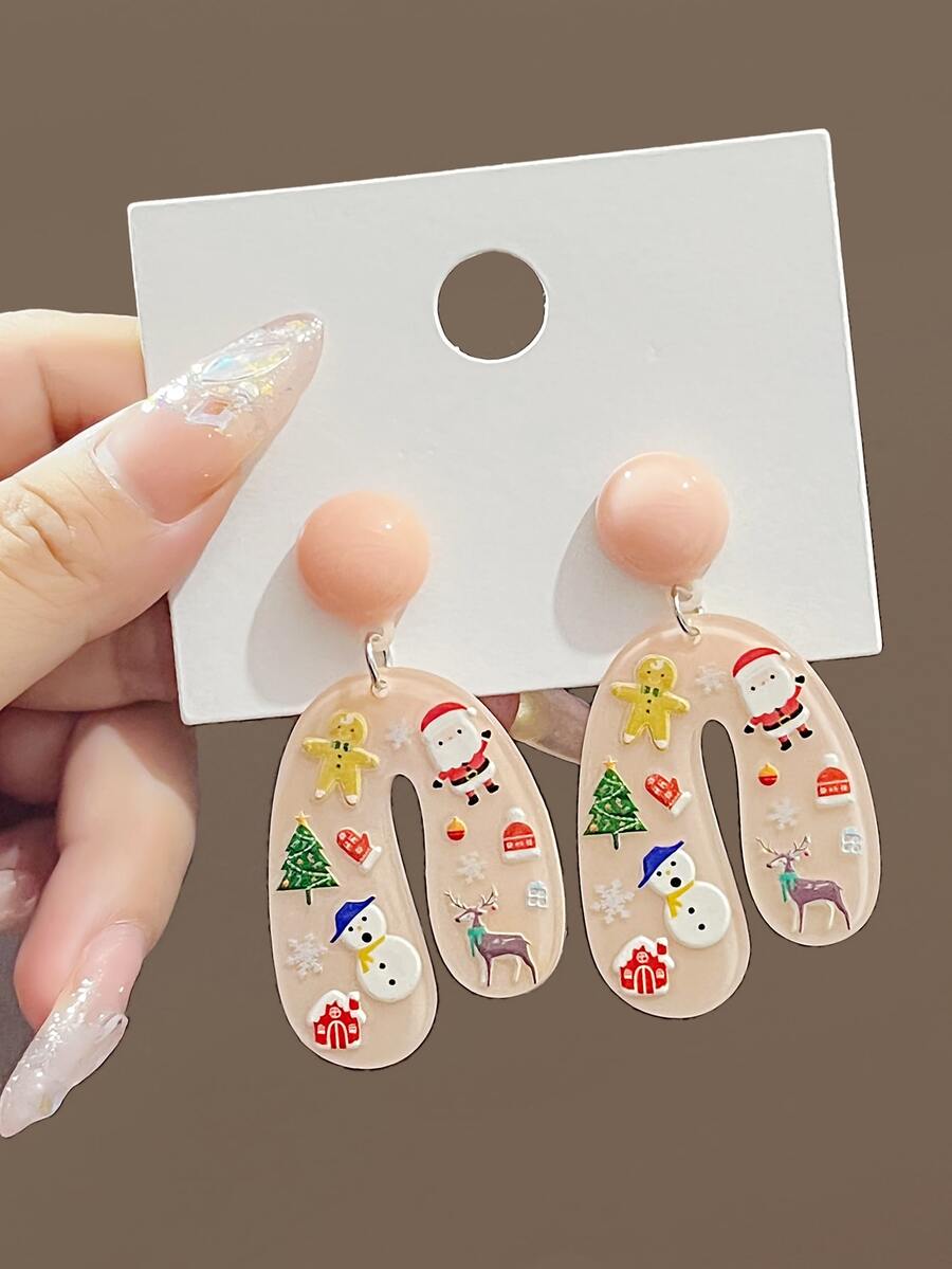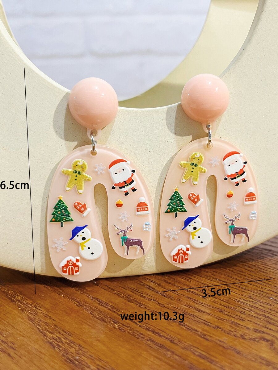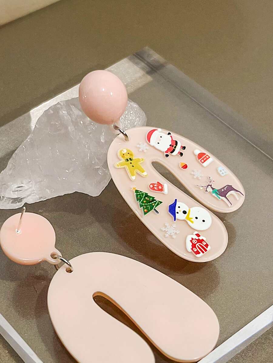 Christmas Santa Claus & Snowman Decor Geometric Drop Earrings