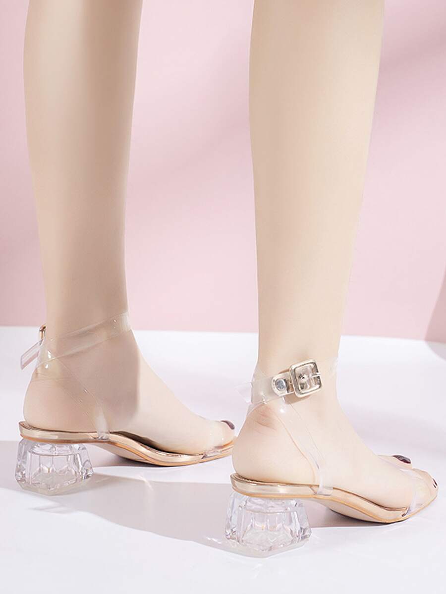 Clear Strap Chunky Heeled Ankle Strap Sandals