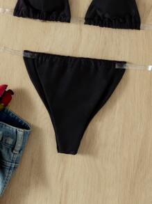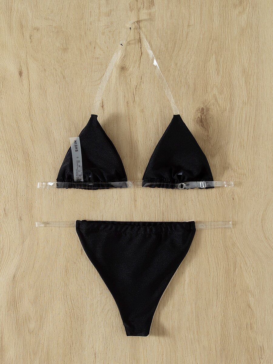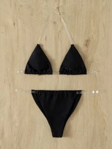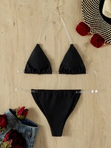 Clear Strap Triangle Thong Bikini Set