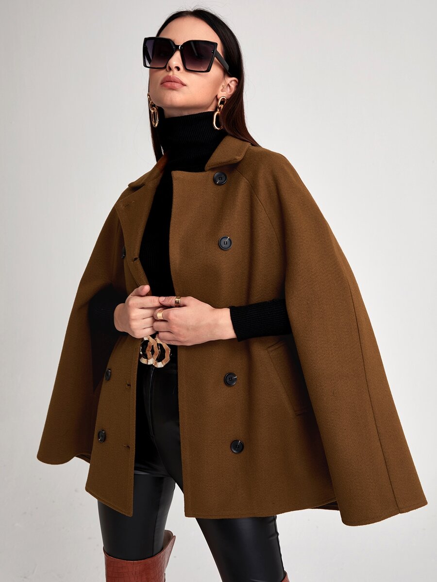 Cloak Sleeve Double Button Cape Coat