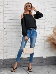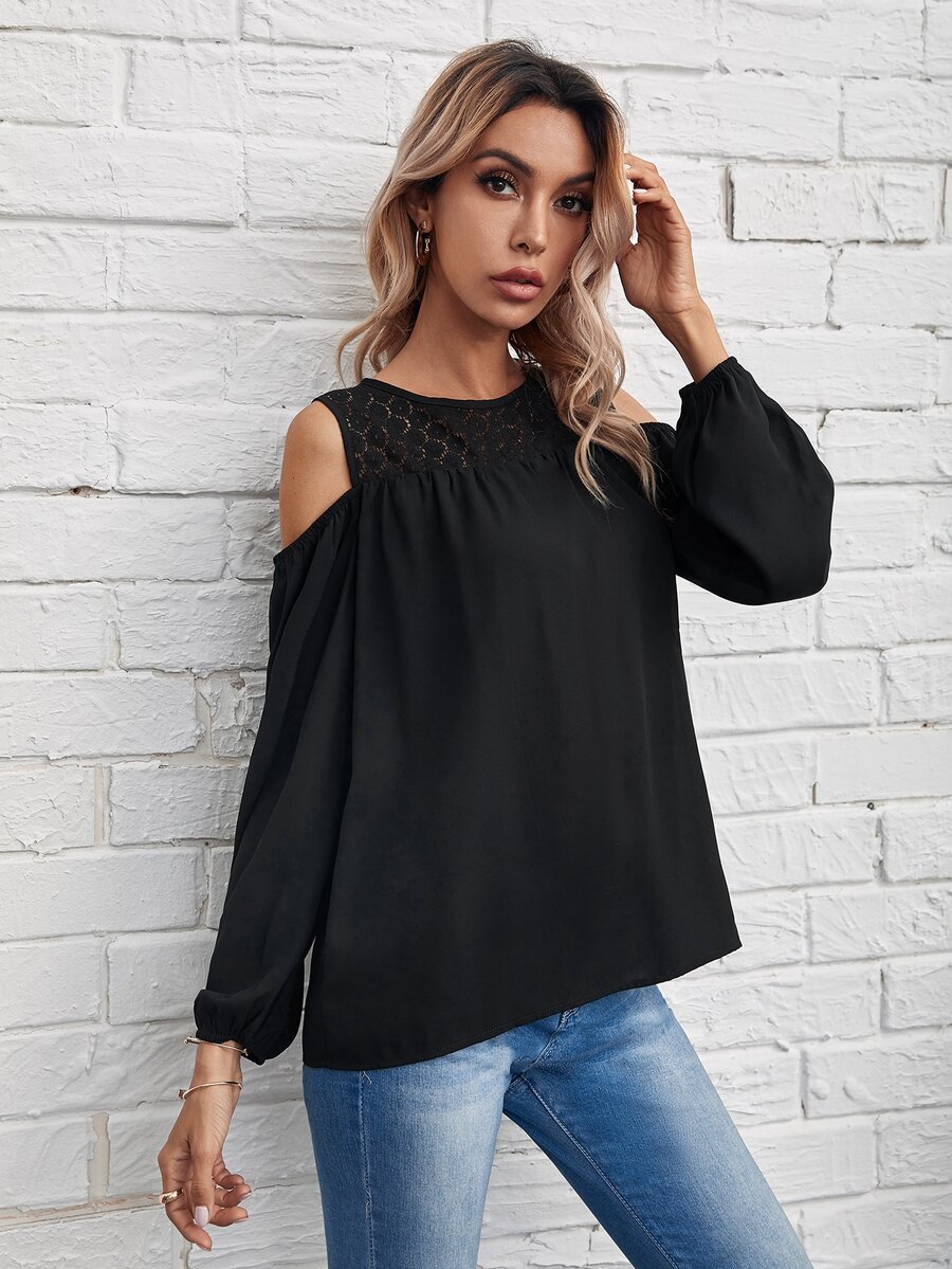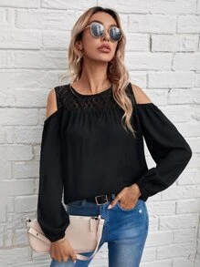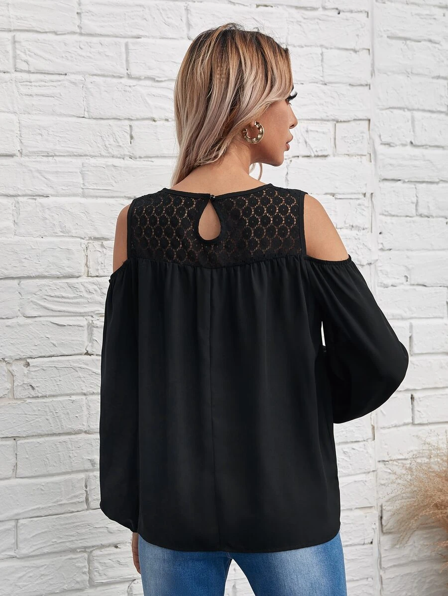 Cold Shoulder Lace Insert Blouse