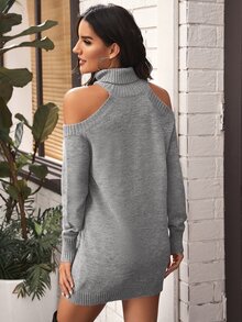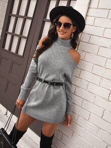Cold Shoulder Turtleneck Sweater Dress Without Belt