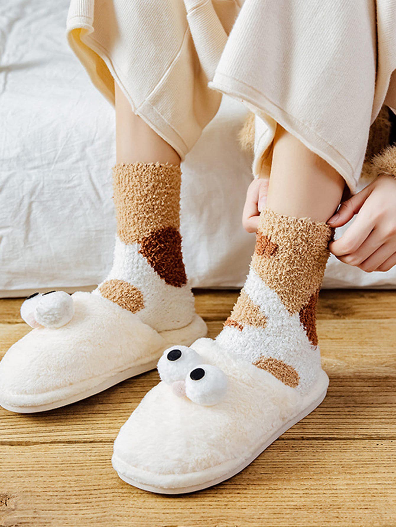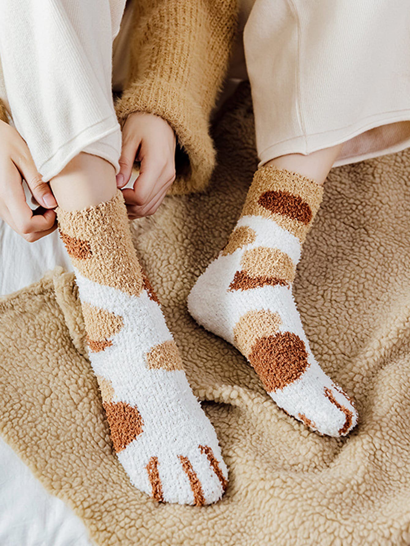 Color Block Fuzzy Crew Socks