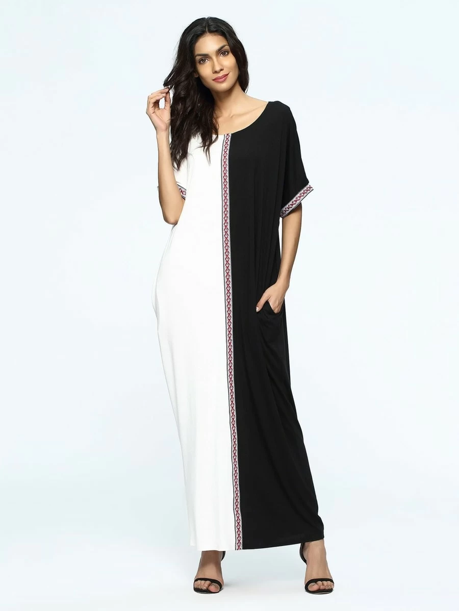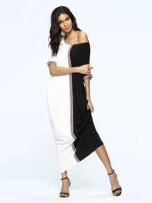 Color Block Woven Tape Maxi Dress