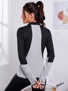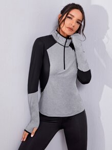 Colorblock Funnel Neck Sports Sweatshirt With Thumb Holes