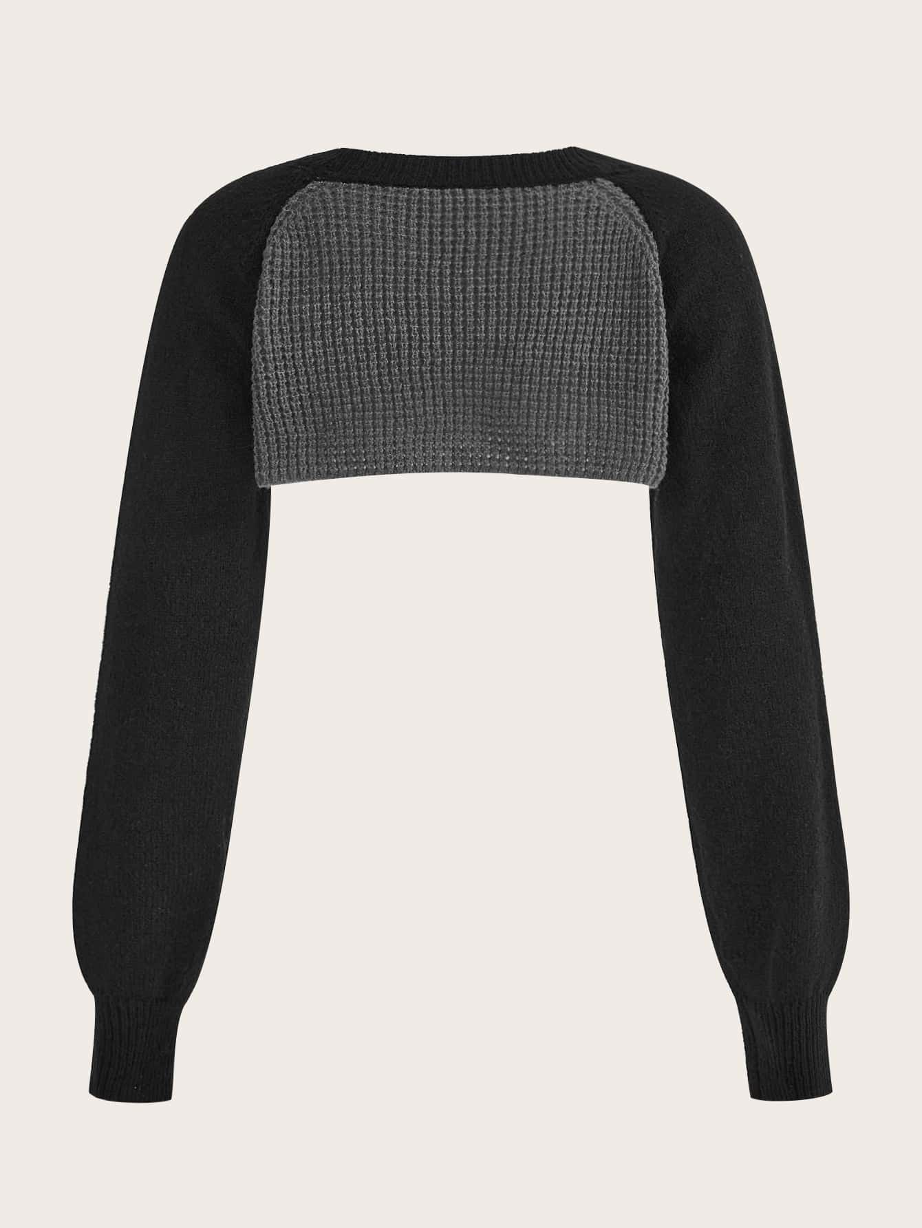 Colorblock Raglan Sleeve Crop Sweater