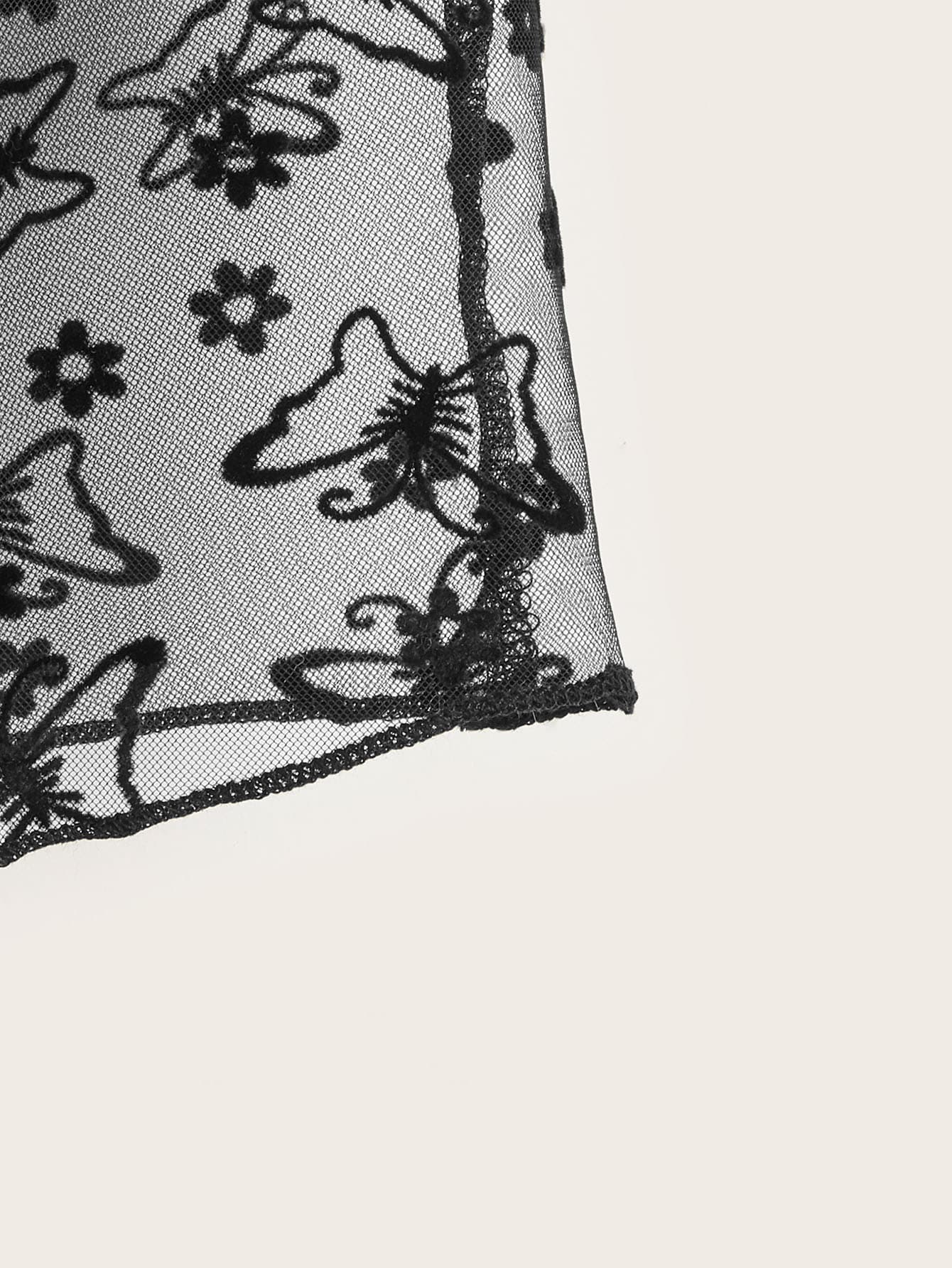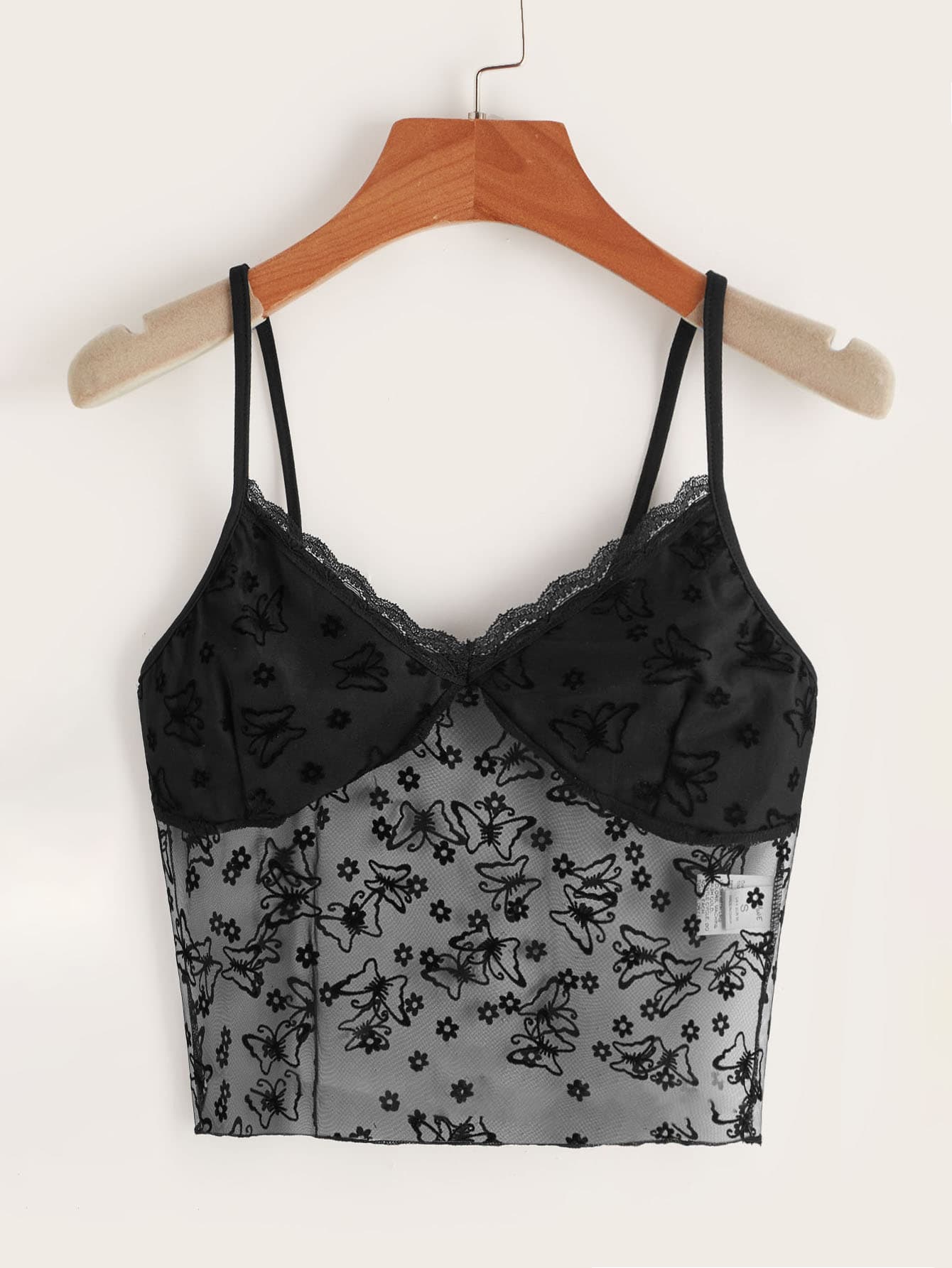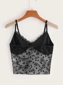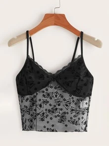 Contrast Butterfly Mesh Cami Top