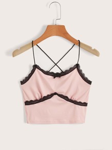 Contrast Lace Criss Cross Cami Top