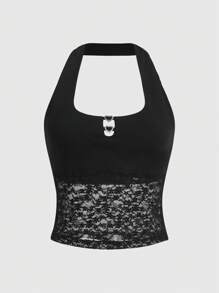 Contrast Lace Halter Top
