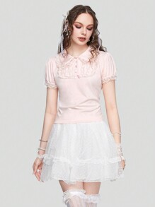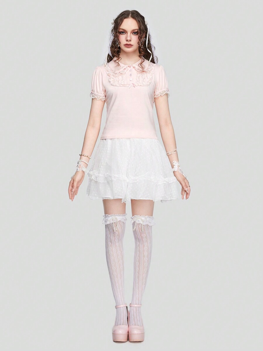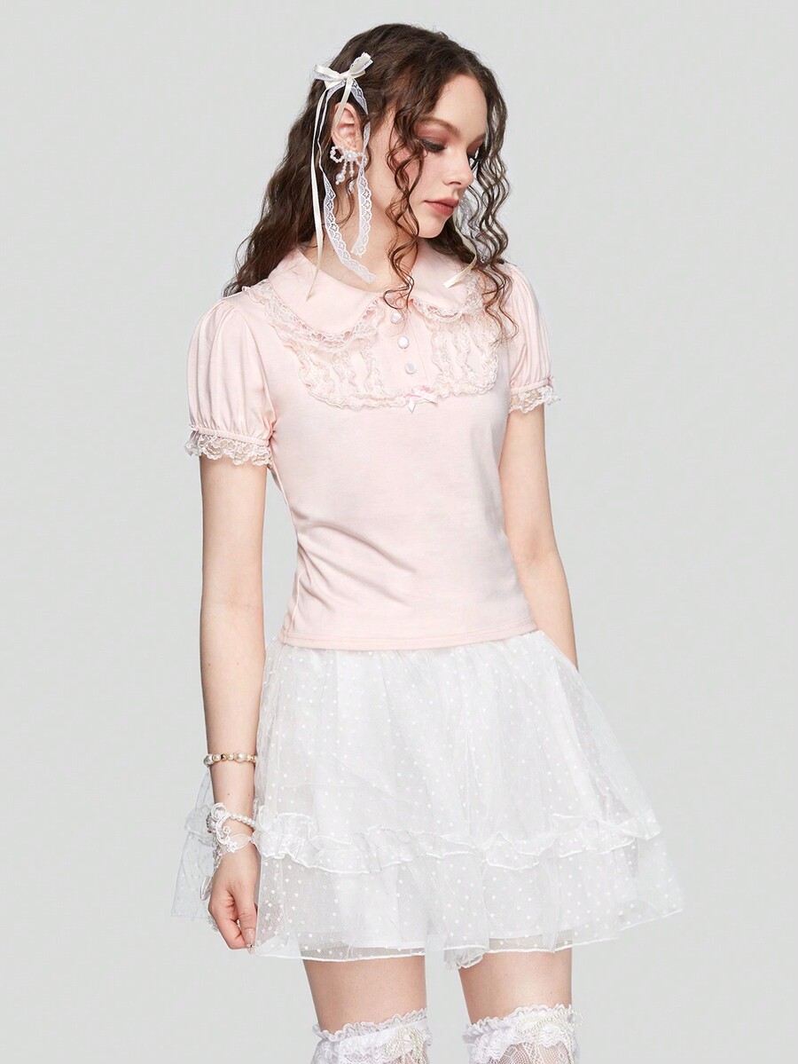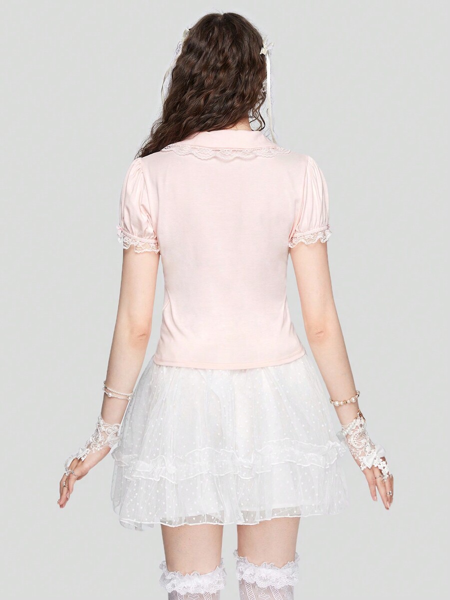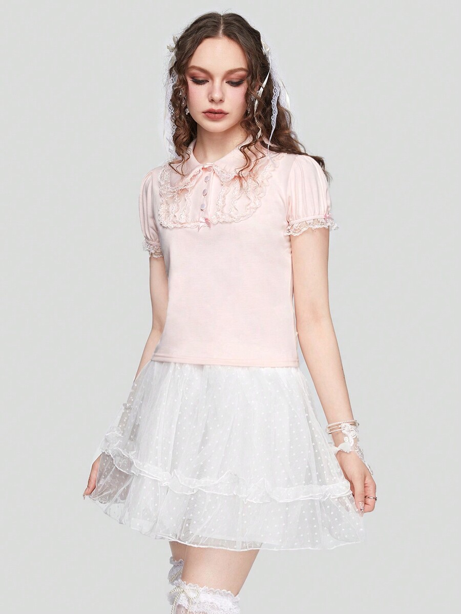 Contrast Lace Polo Neck Tee