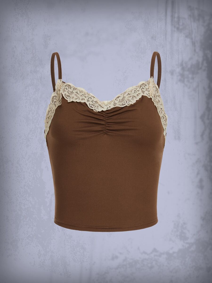 Contrast Lace Ruched Cami Top
