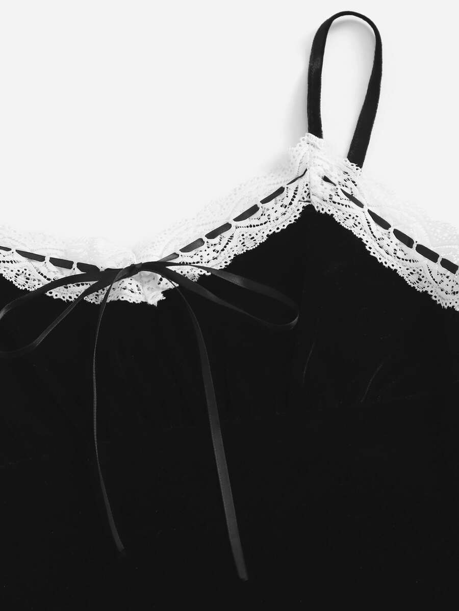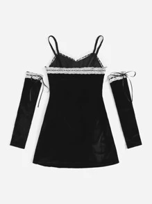 Contrast Lace Velvet Dress With A Pair Oversleeve