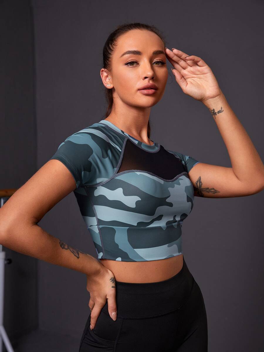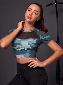 Contrast Mesh Camo Sports Tee