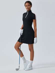 Contrast Panel Quarter Zip Golf Dress