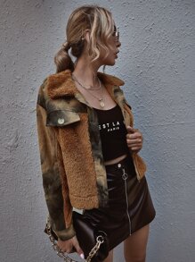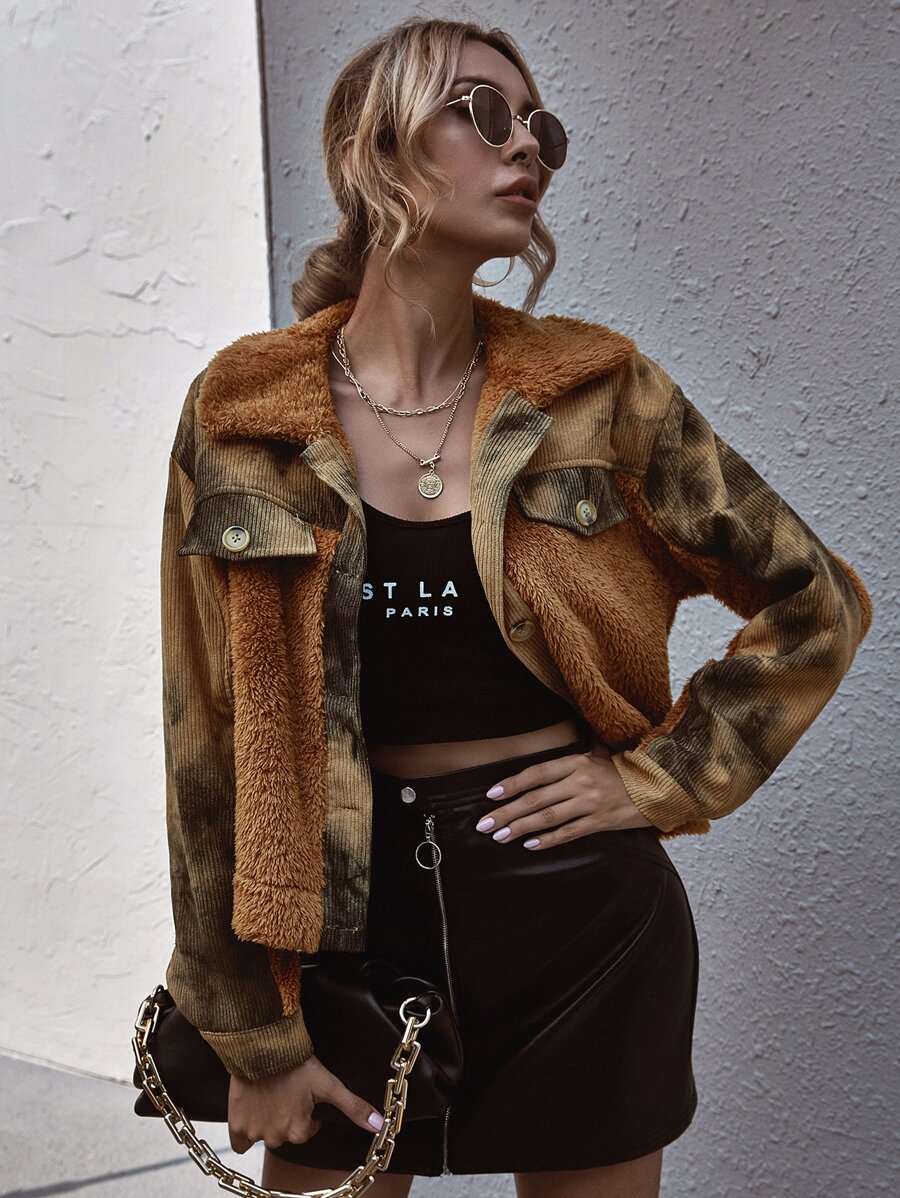 Contrast Sherpa Tie Dye Corduroy Jacket