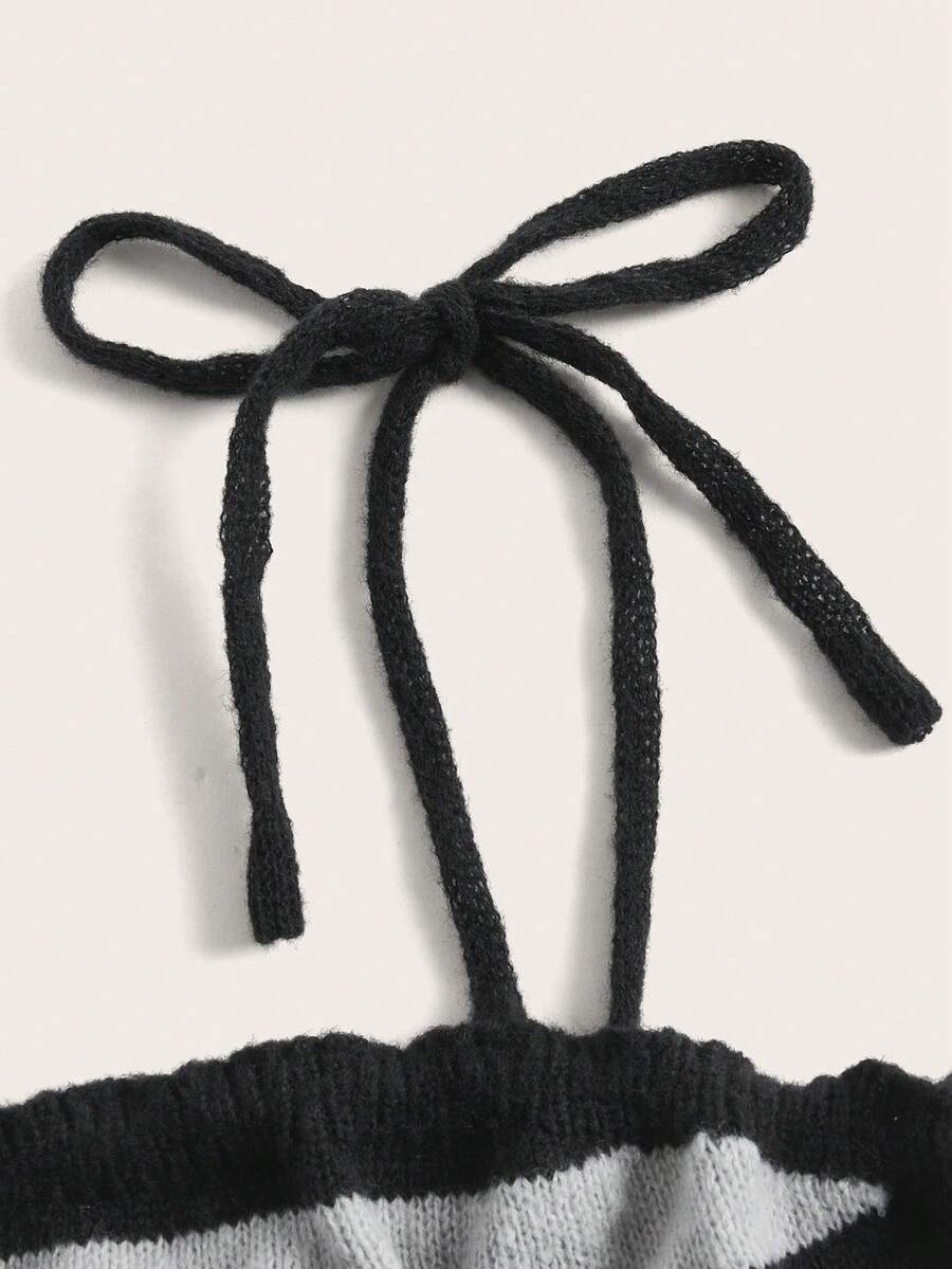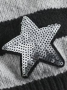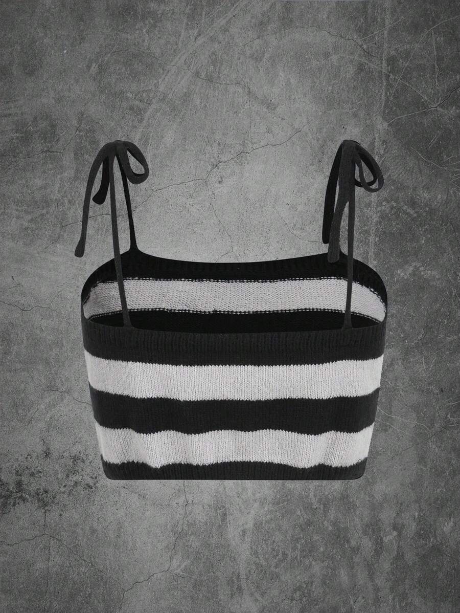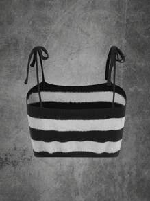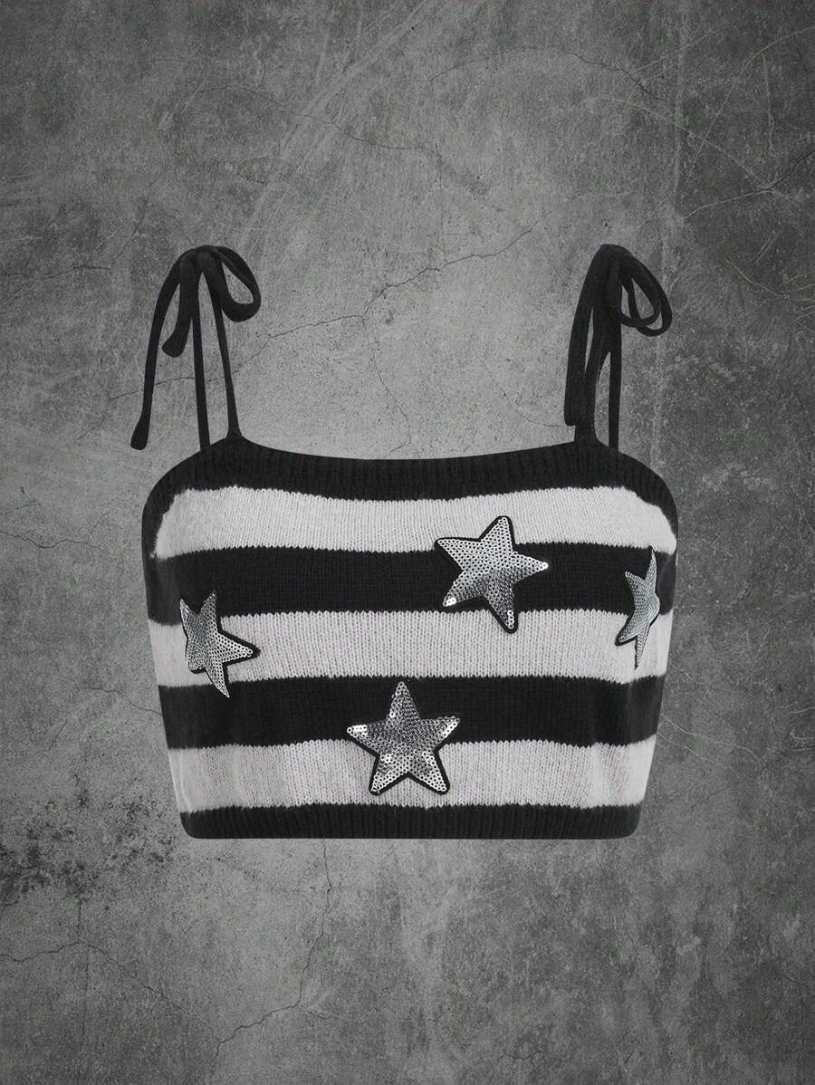 Contrast Star Sequin Striped Tie Shoulder Cami Knit Top