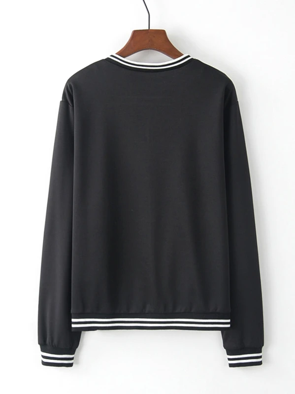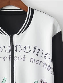 Contrast Striped Letter And Cartoon Graphic Baseball Jacket