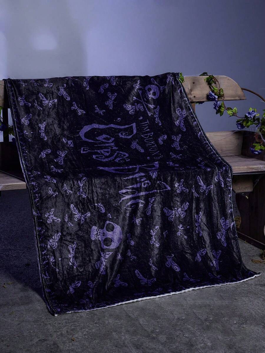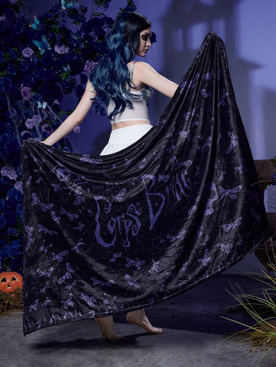 Corpse Bride | ROMWE 1pc Dark Cartoon Butterfly & Letter Print Sofa Throw Blanket, Couch Cover, Nap Mat