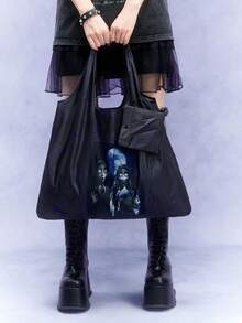 Corpse Bride | ROMWE 2pcs Black Color Storage Bags, High Capacity Foldable Portable Shopping Totes With Change Purse