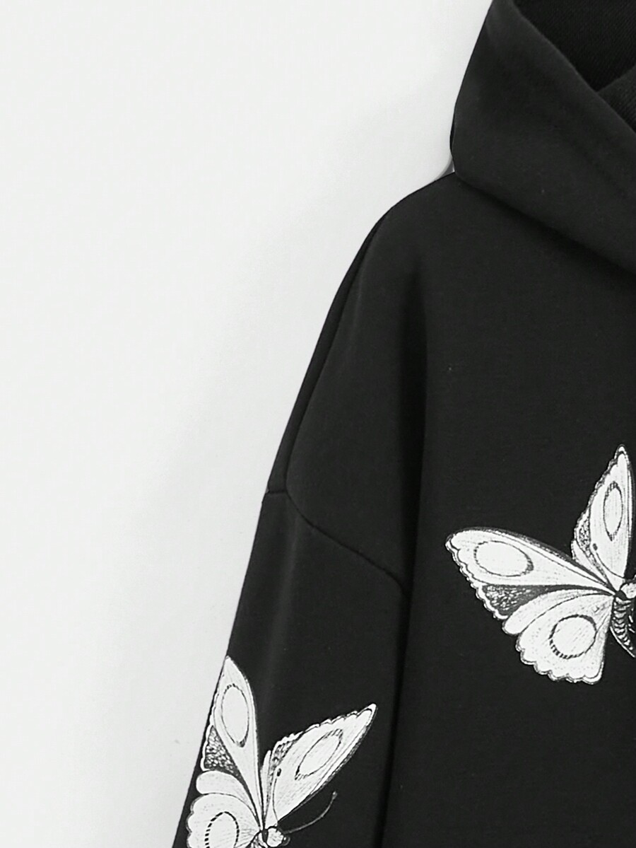 Corpse Bride | ROMWE Butterfly & Letter Graphic Drop Shoulder Drawstring Zipper Hoodie