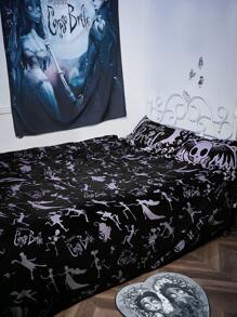 Corpse Bride | ROMWE Comfortable Cartoon Figure And Letter Printed Sheet Sets With Pillowcases