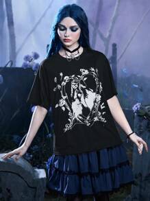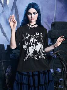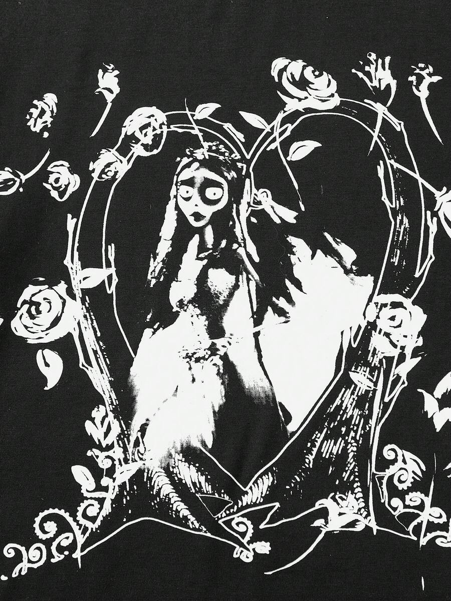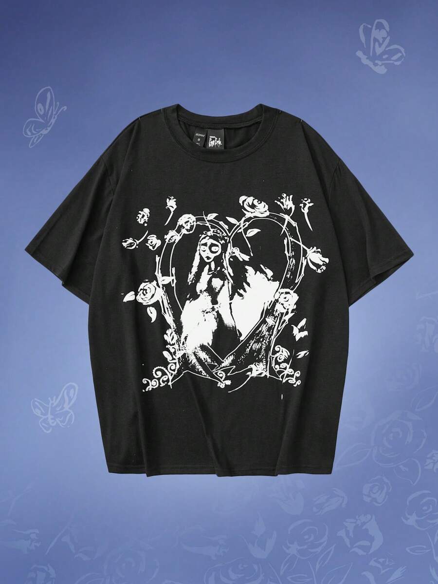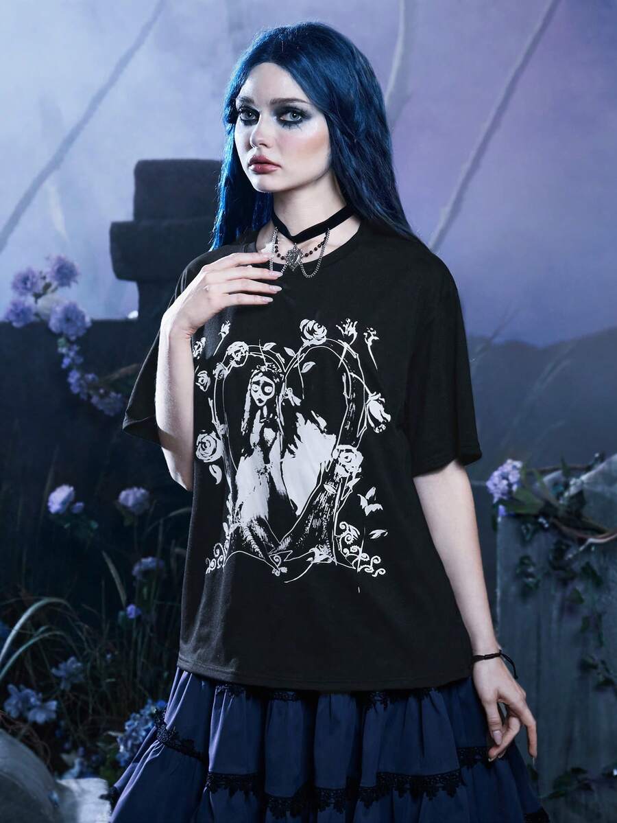 Corpse Bride | ROMWE Floral & Cartoon Figure Graphic Tee