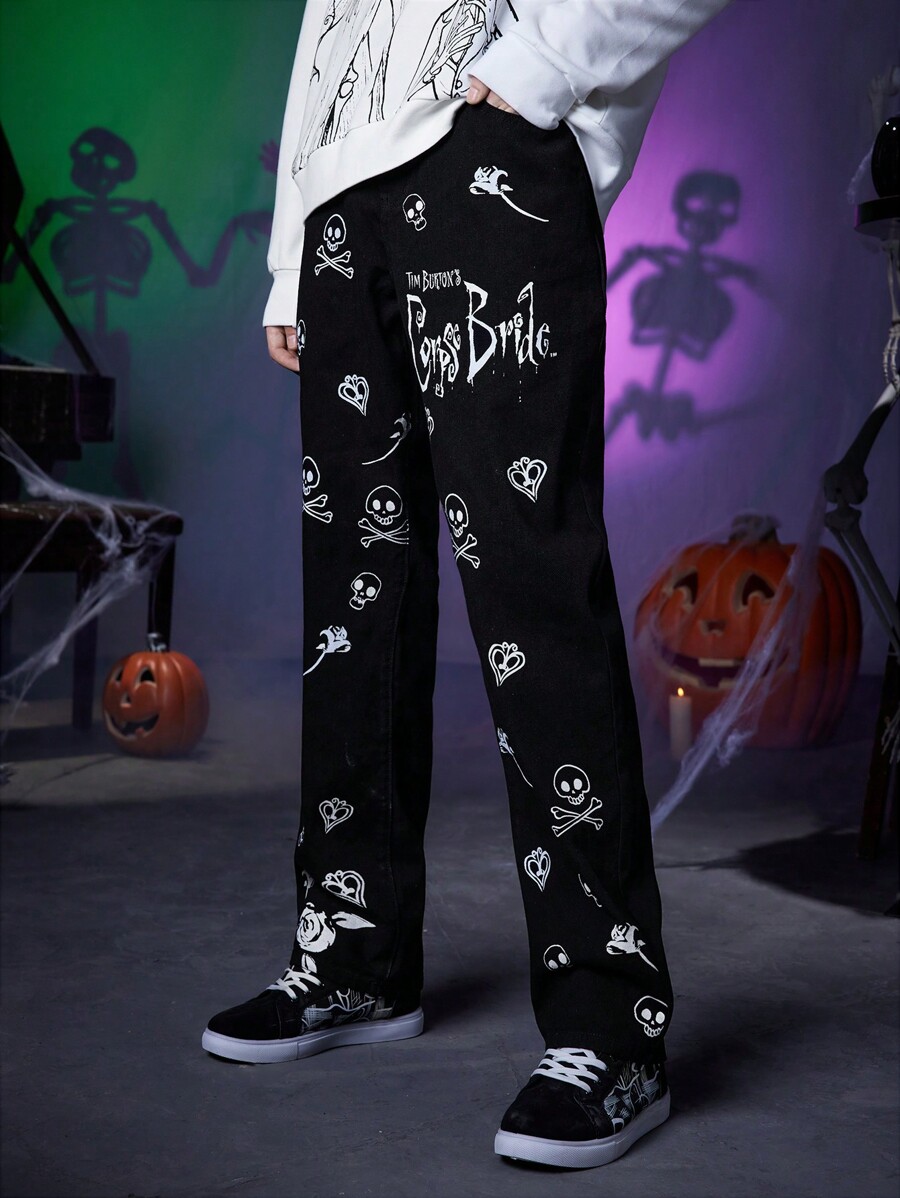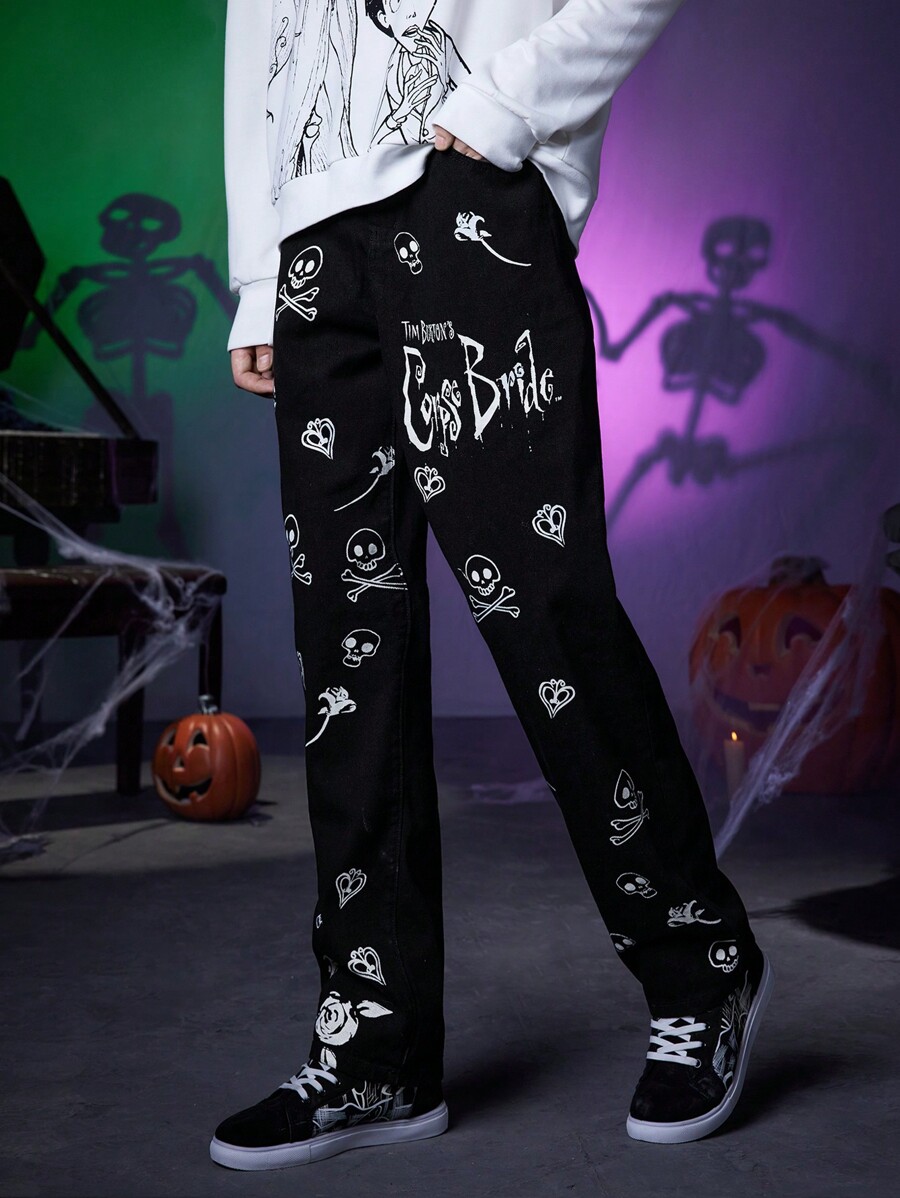 Corpse Bride | ROMWE Guys Halloween Print Straight Leg Jeans