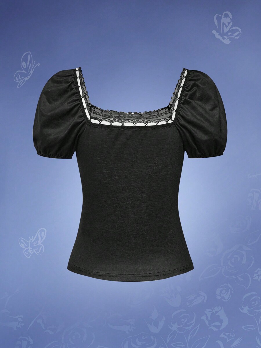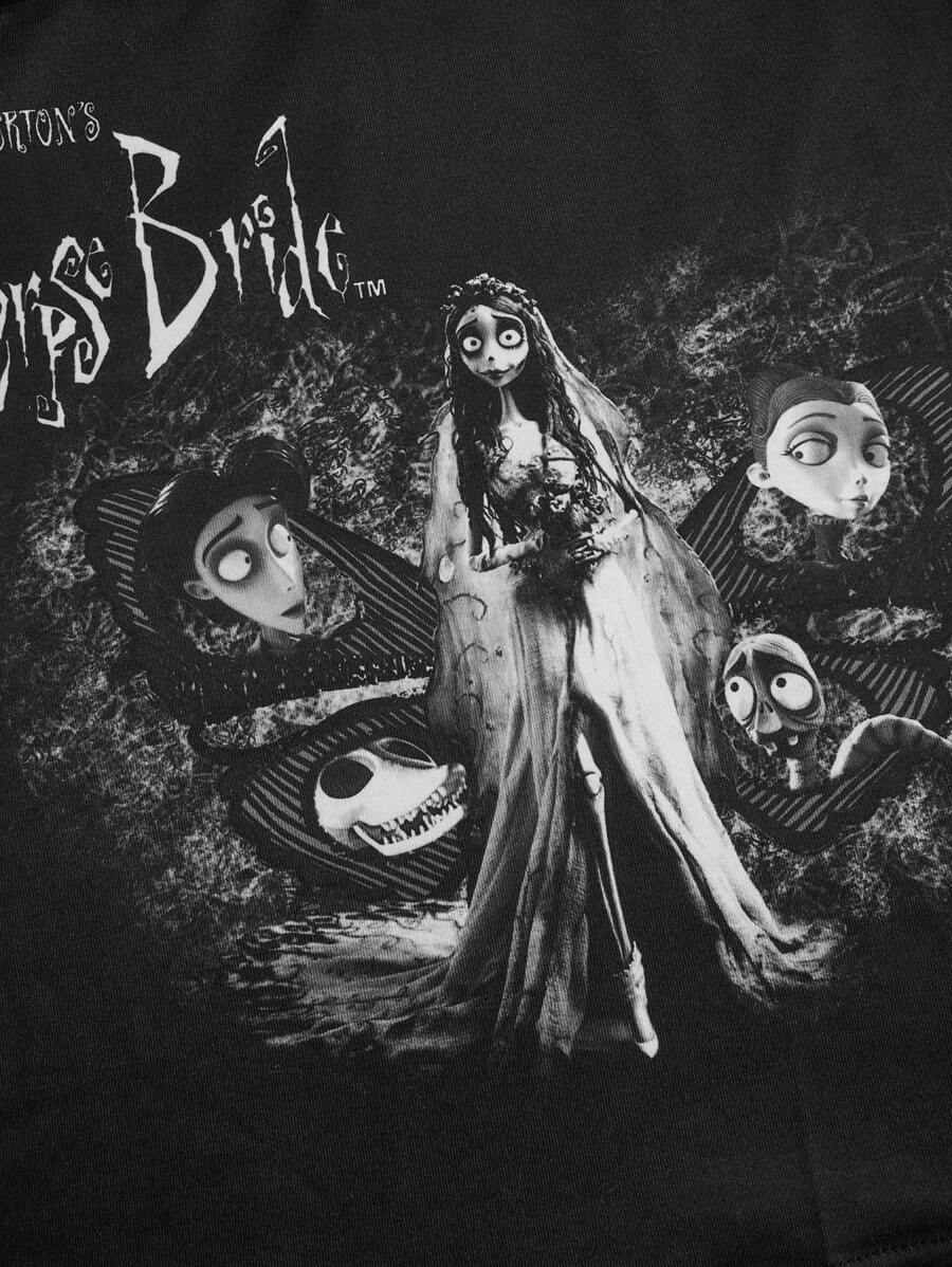 Corpse Bride | ROMWE Halloween Cartoon Graphic Lace Patchwork Bow Tie Puff Sleeve Top And Shorts Pajama Set, Summer, School
