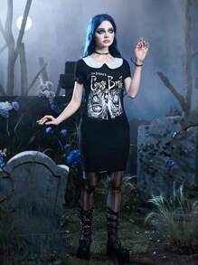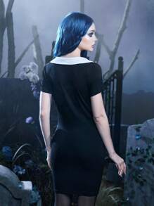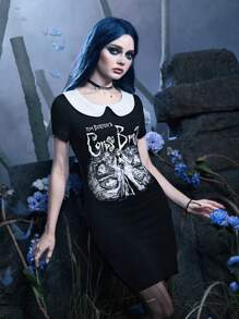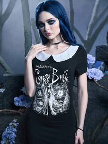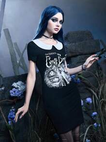 Corpse Bride | ROMWE Letter Graphic Contrast Collar Dress Gothic