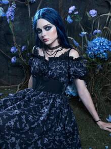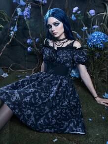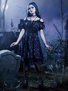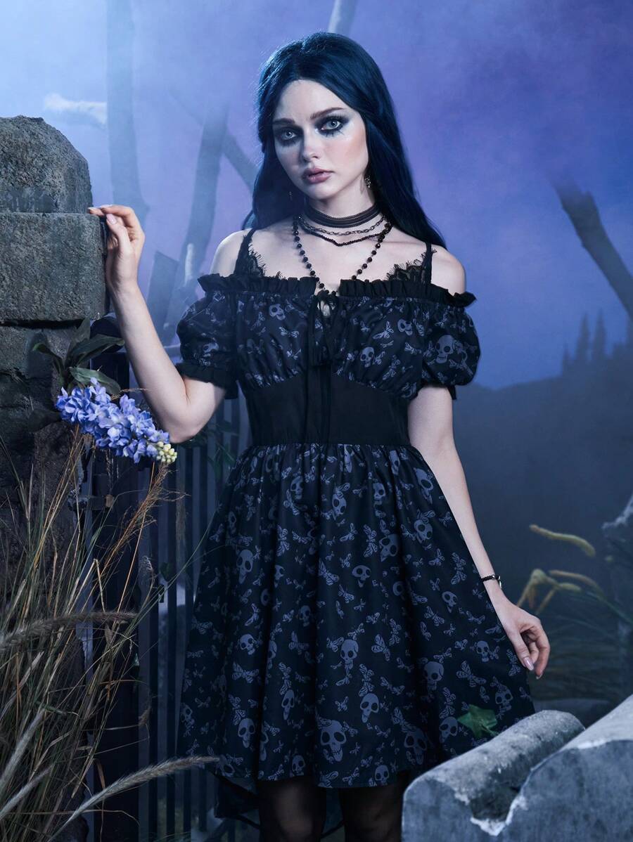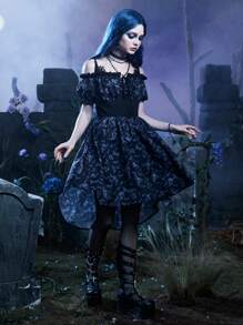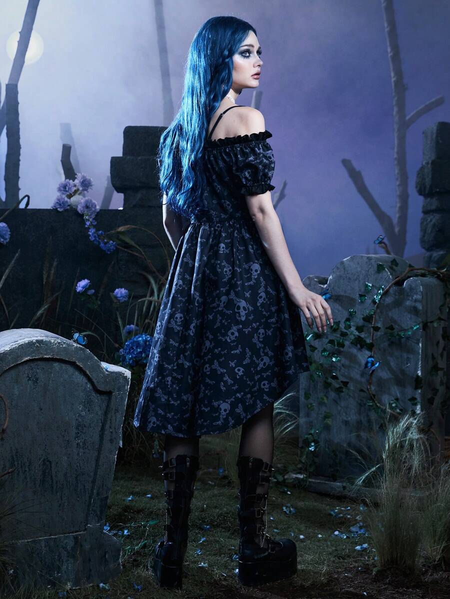Corpse Bride | ROMWE Skull Print Cold Shoulder High Low Hem Dress