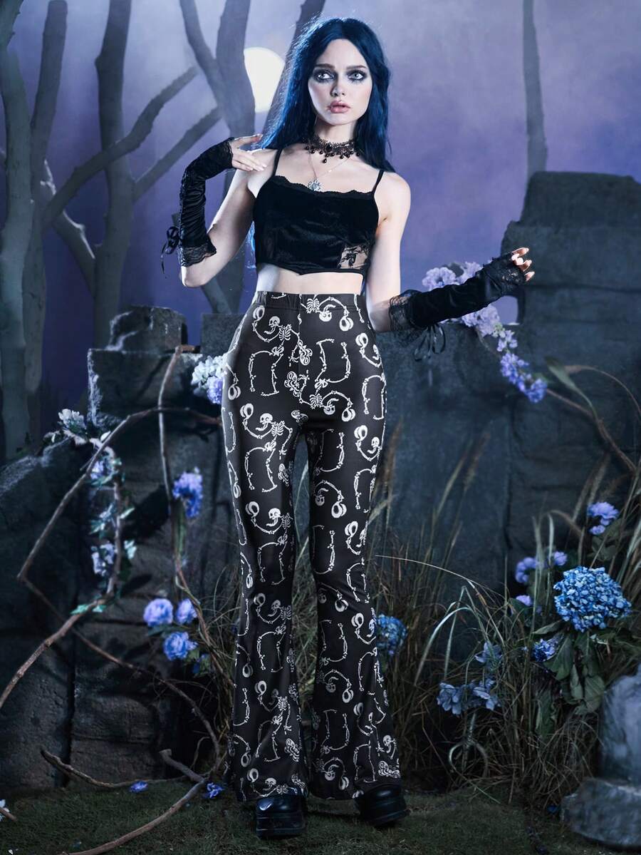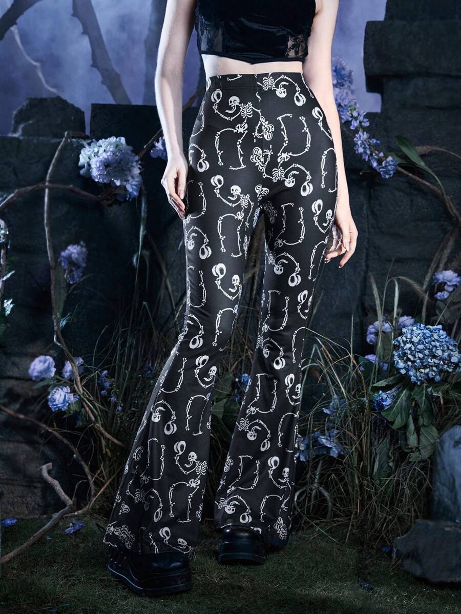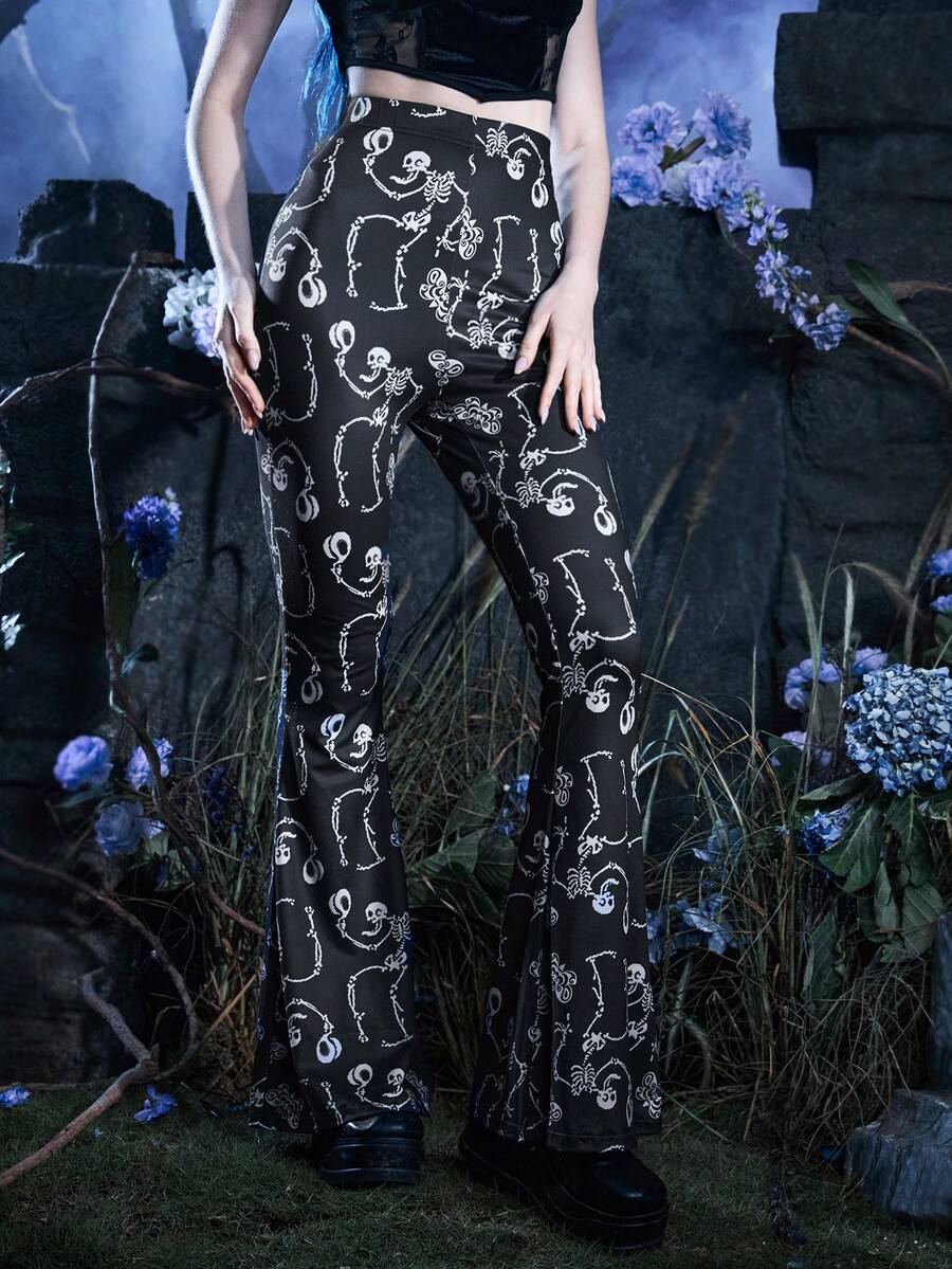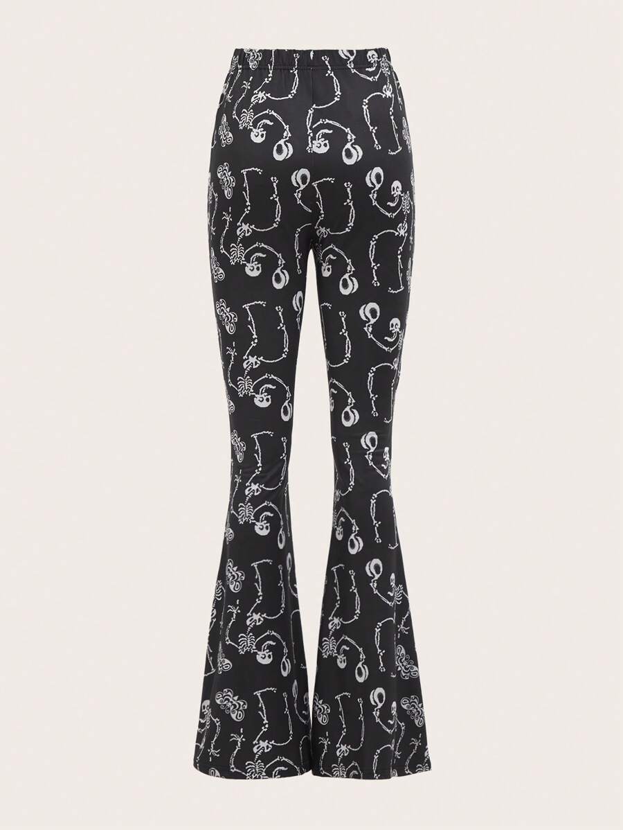Corpse Bride | ROMWE Skull Print Flare Leg Pants