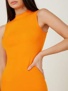 Cotton Neon Orange Mock-Neck Bodycon Dress