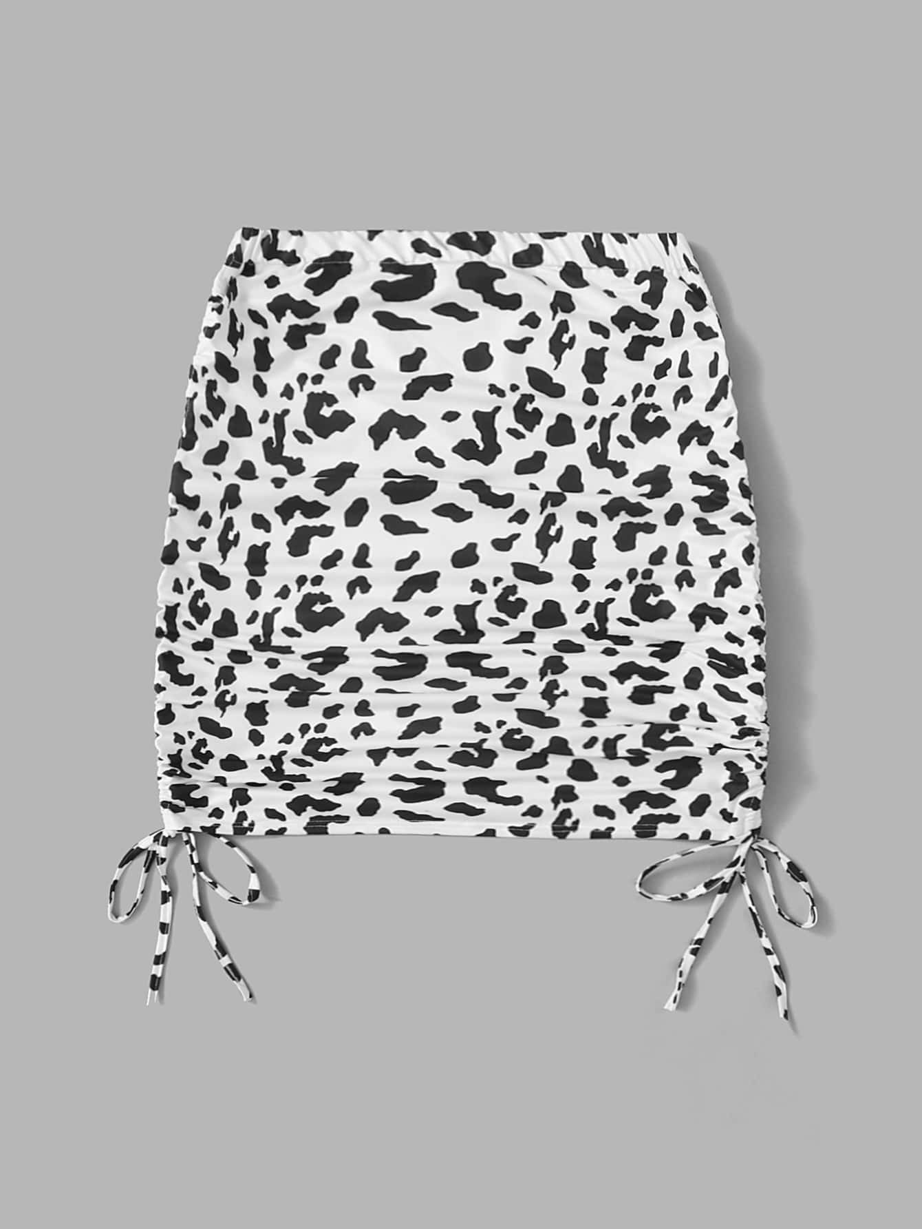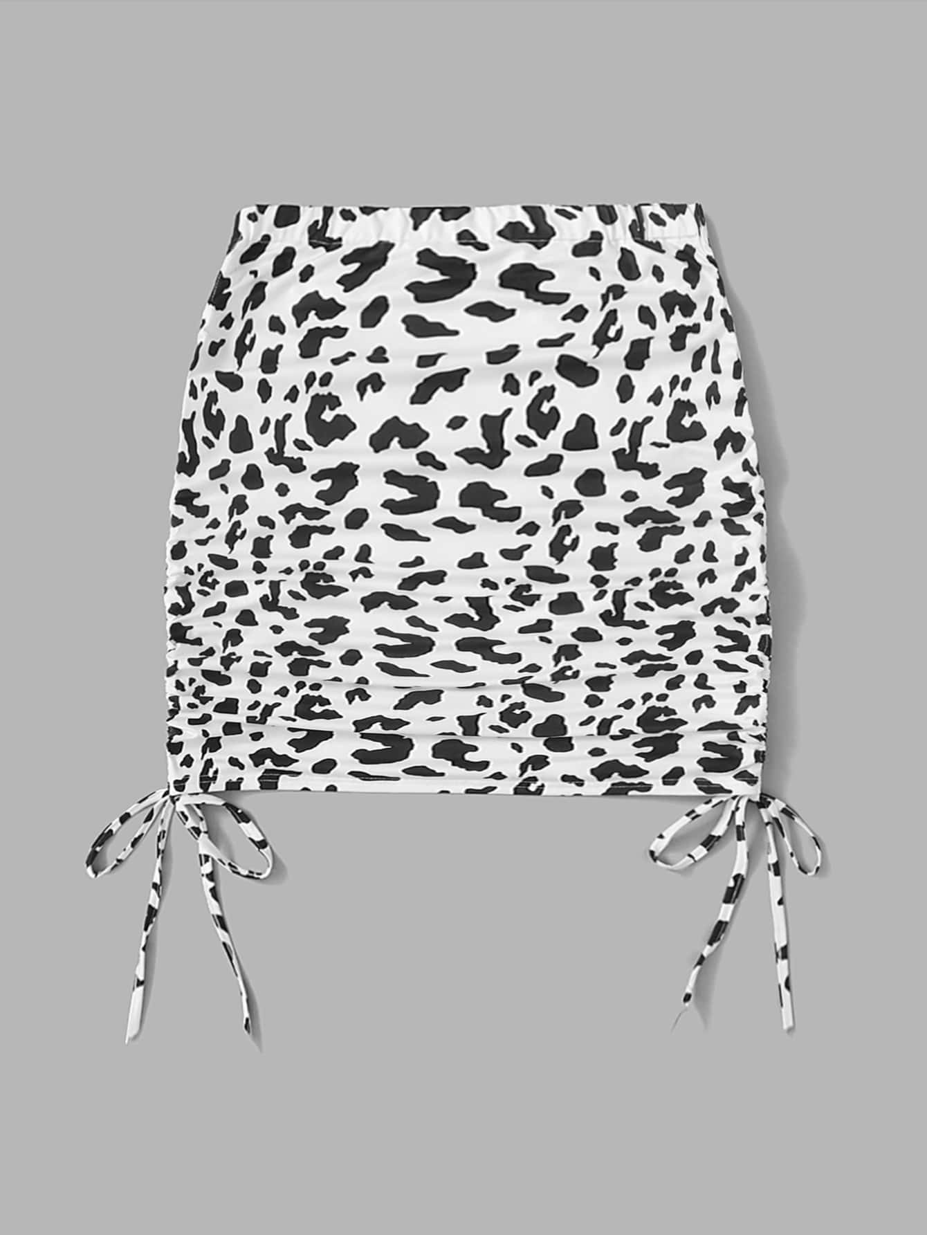 Cow Print Drawstring Ruched Skirt