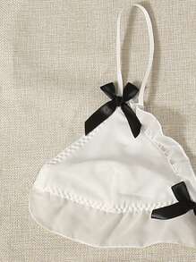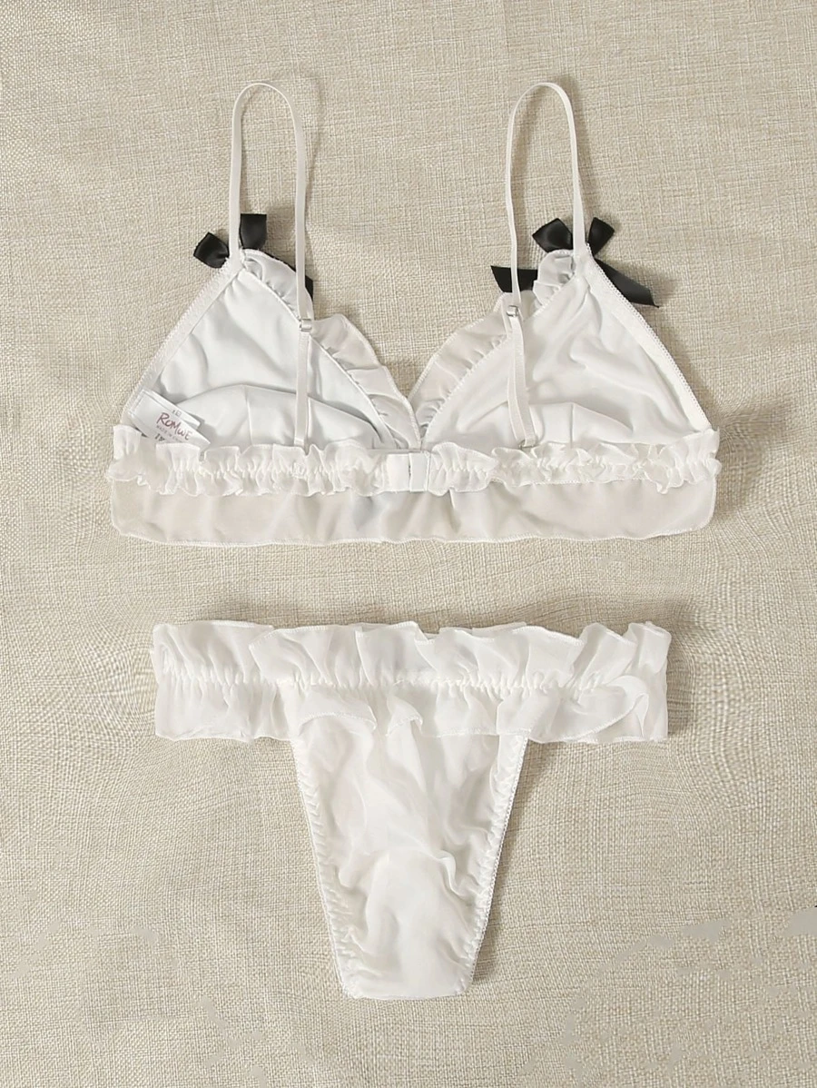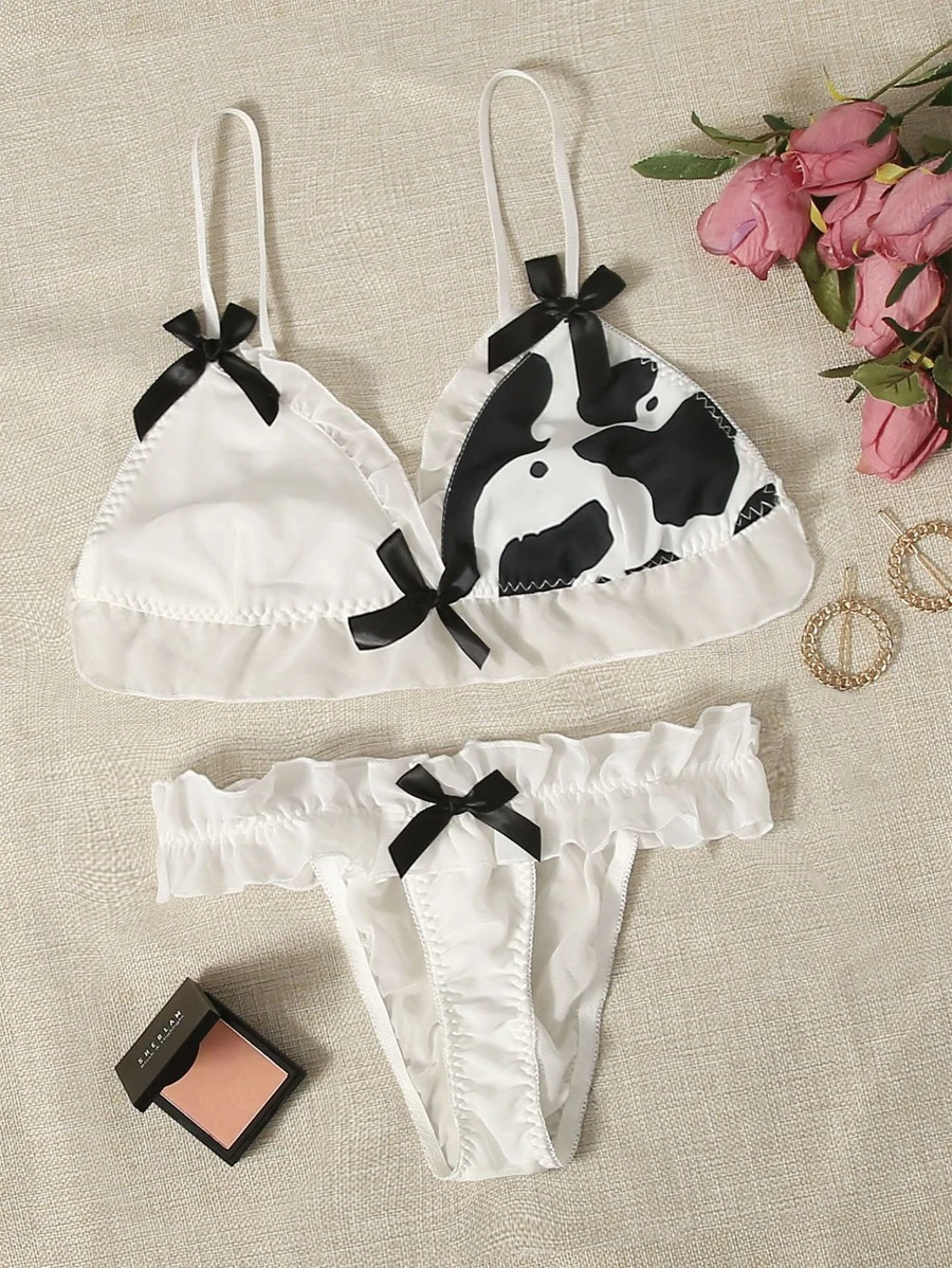 Cow Print Frill Trim Thong Lingerie Set