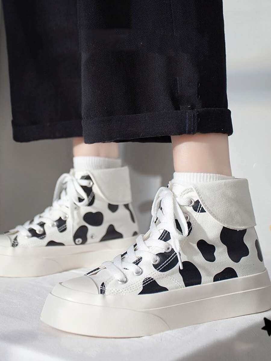 Cow Print High Top Canvas Shoes