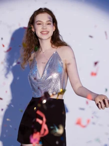 Cowl Neck Backless Metallic Chain Halter Top