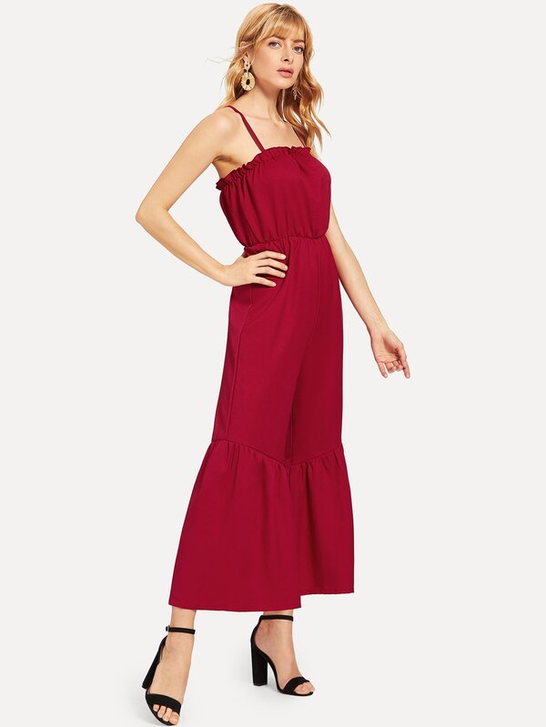 Criss Cross Back Frill Cami Jumpsuit